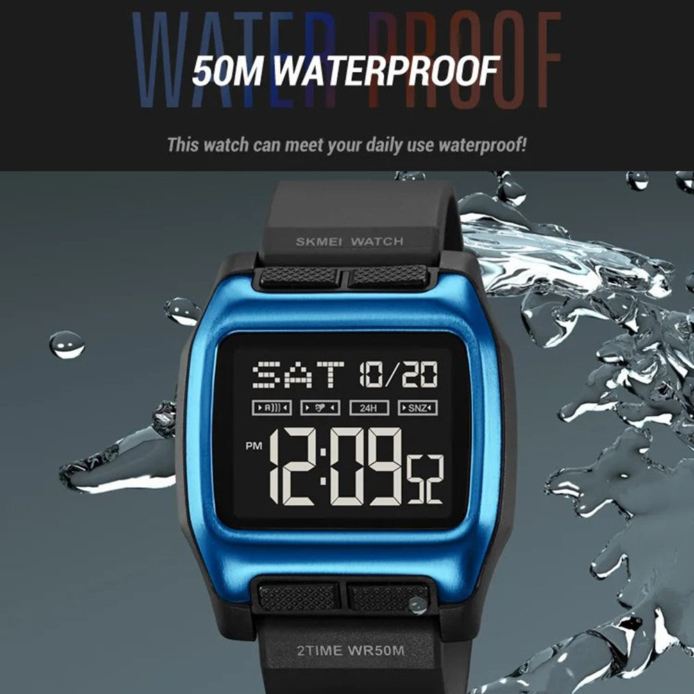 SKMEI 2193 Vierkant Digitaal Horloge met EL Achtergrondverlichting - Zwart + Blauw