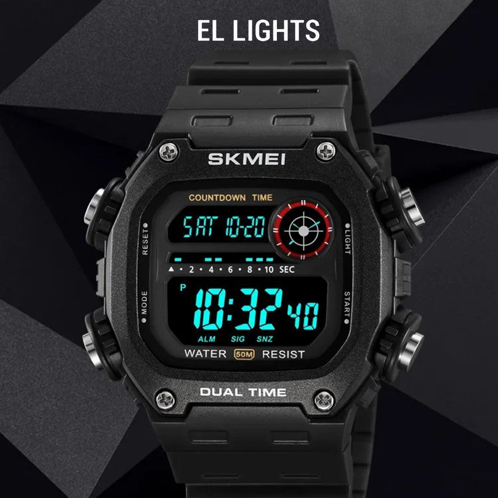 SKMEI 2193 Vierkant Digitaal Horloge met EL Achtergrondverlichting - Zwart + Zwart