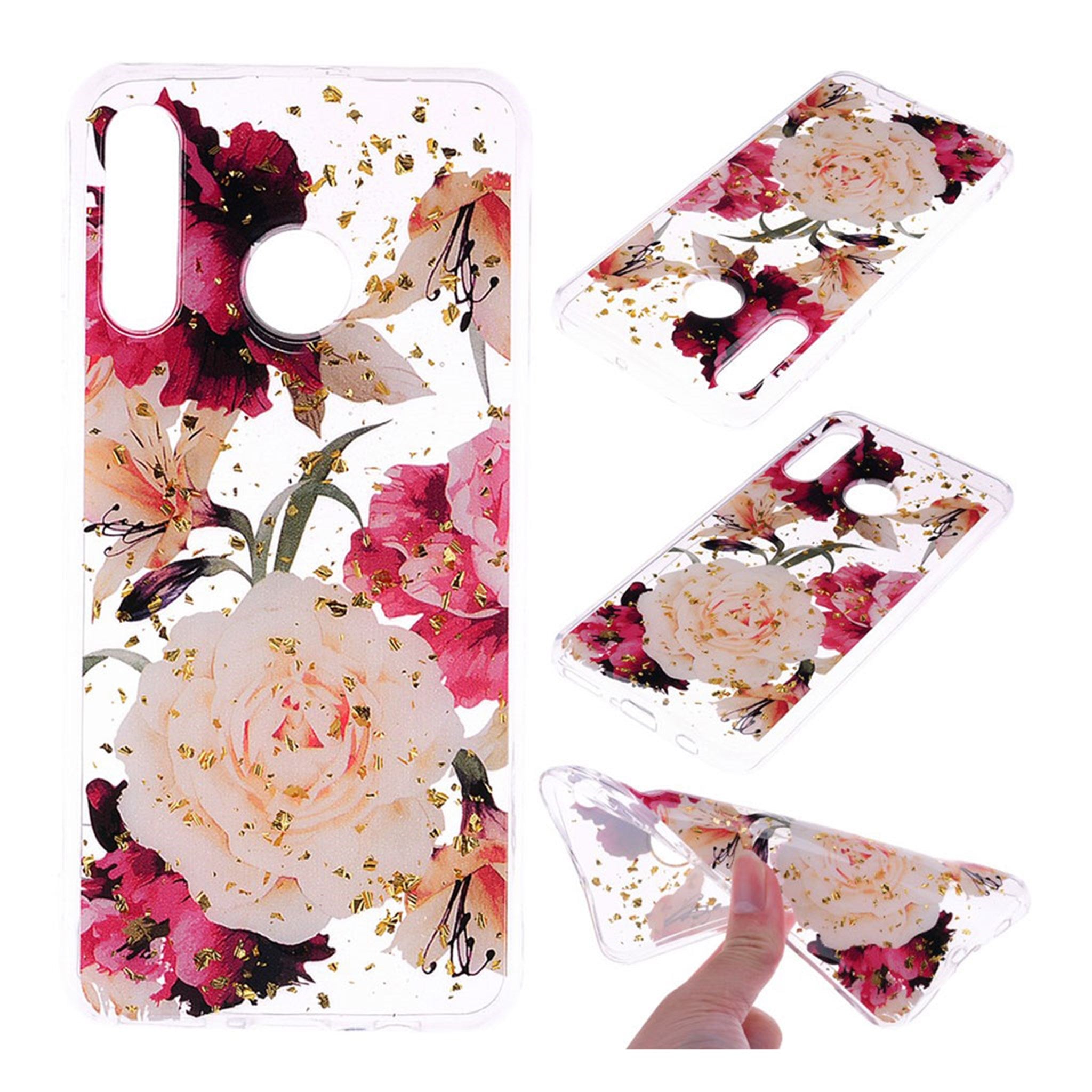 Glitter Huawei P30 Lite Hoesje - Mooie Bloemen