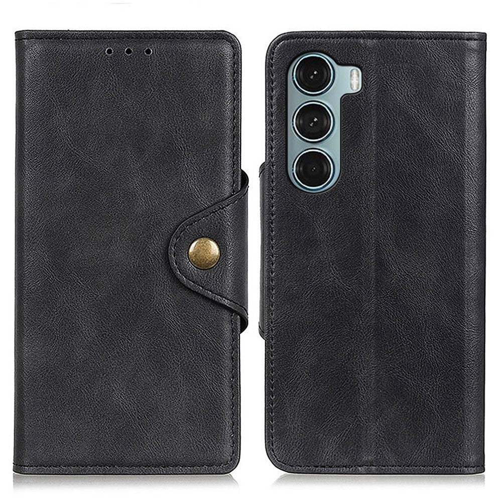 Echt lederen flip-hoesje in portemonnee-stijl voor Motorola Moto G200 5G - Zwart
