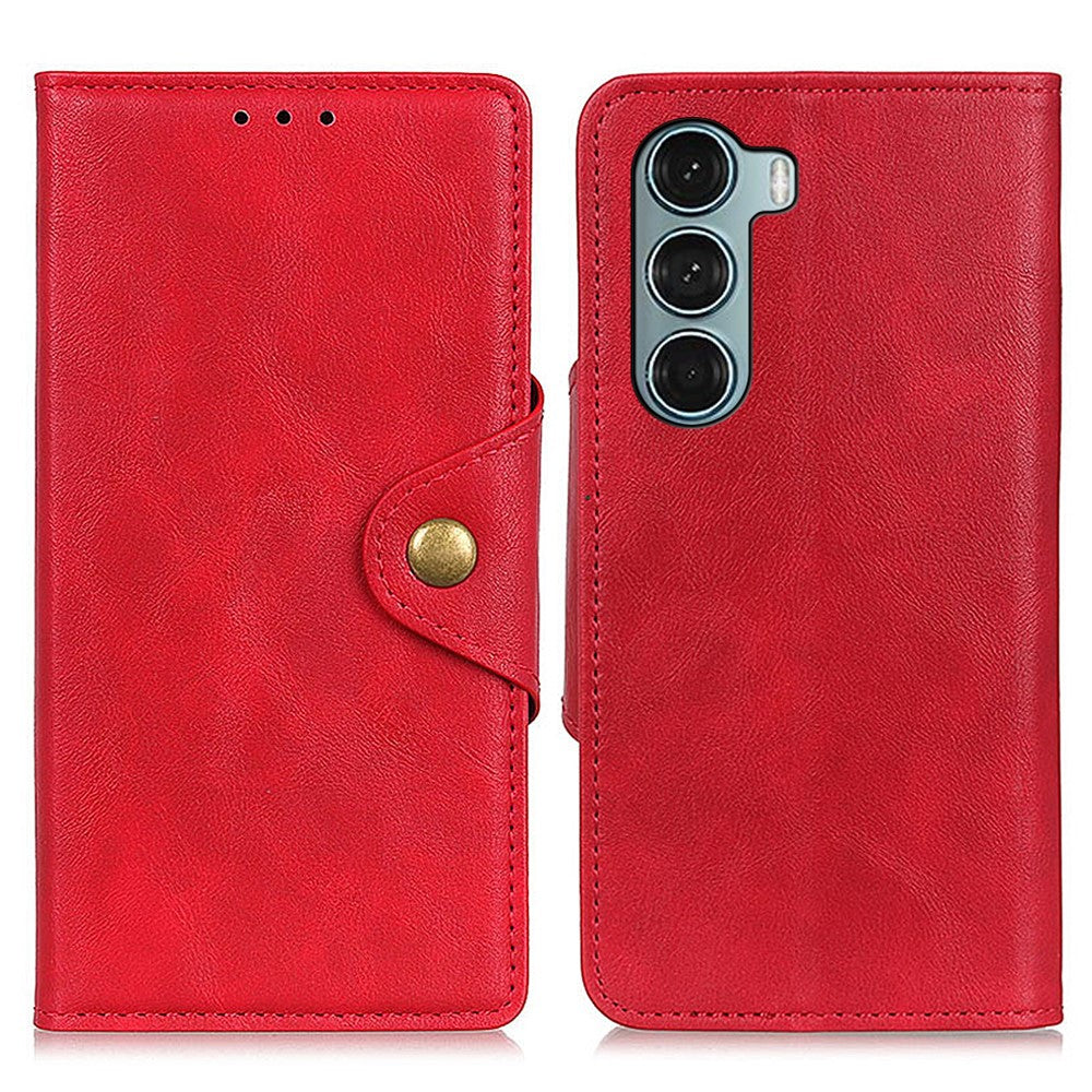 Echt lederen flip-hoesje in portemonnee-stijl voor Motorola Moto G200 5G - Rood