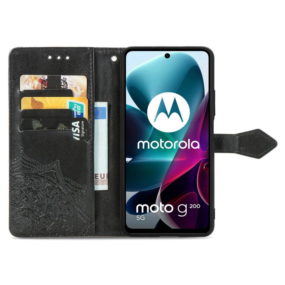 Mandala Motorola Moto G200 5G leren etui - Zwart