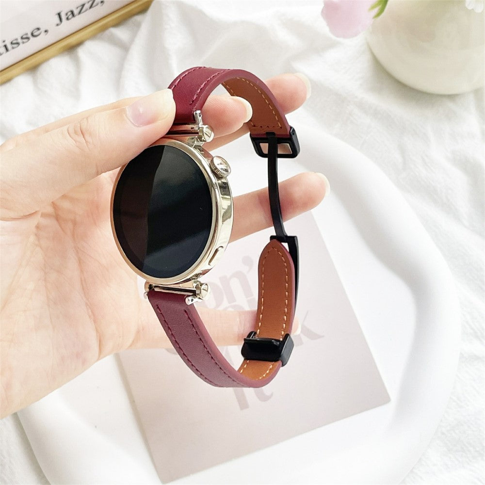 KALEBOL Huawei Horlogebandje 22mm Nautilus Magnetische Gesp Echt Koeienleer Band - Bruin