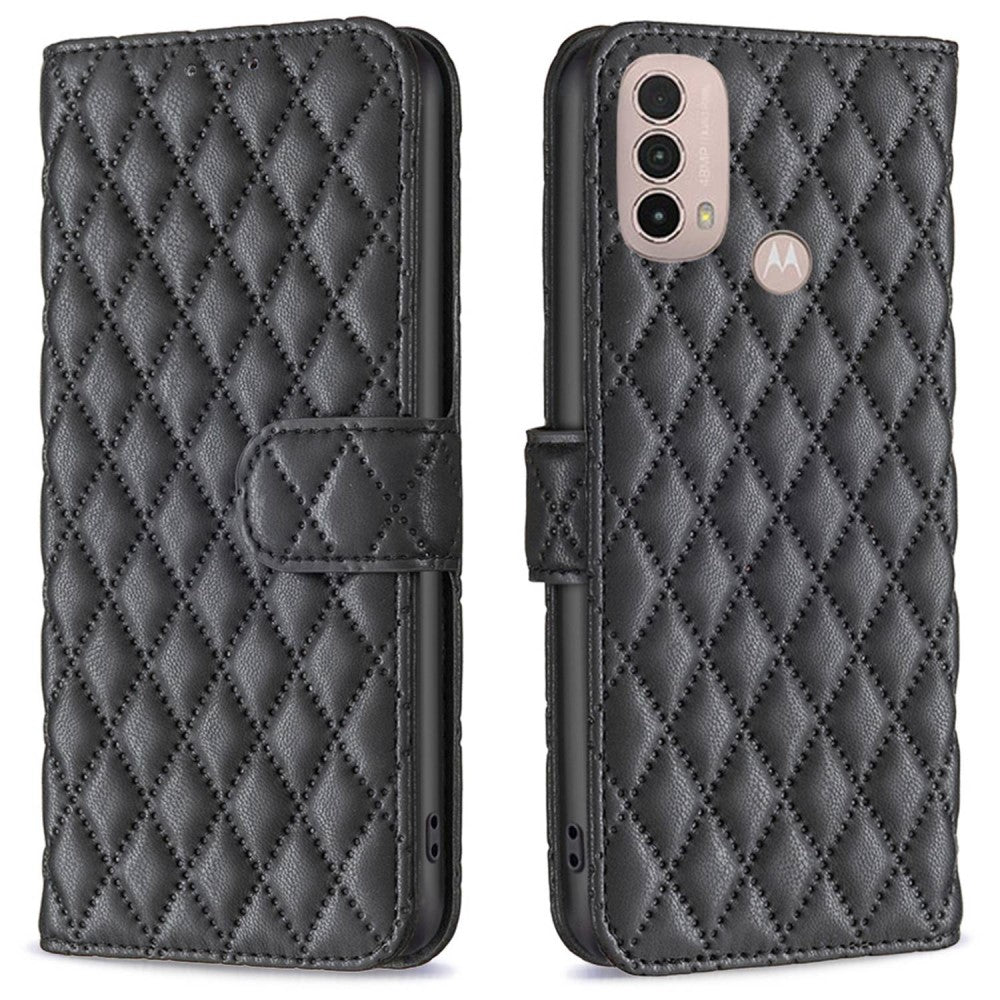 Étui à rabat mat à motif en losange pour Motorola Moto E30 / E40 - Noir