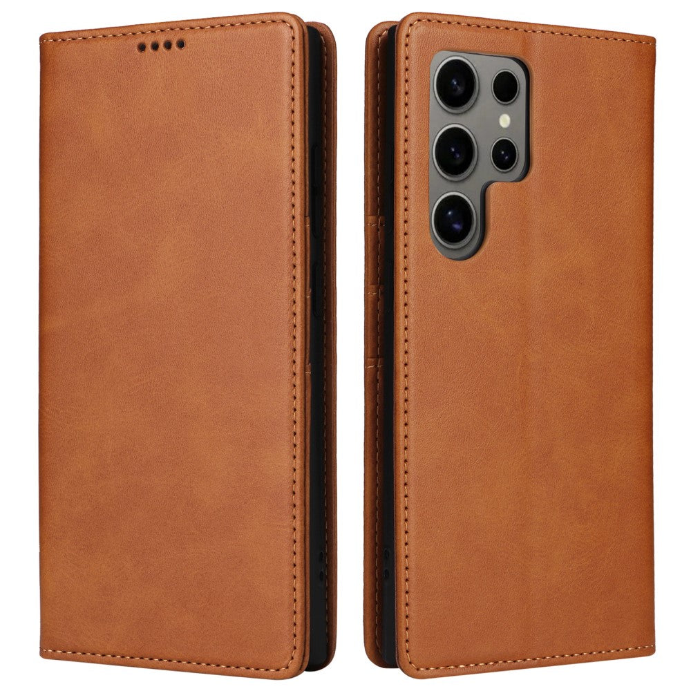 Samsung Galaxy S24 Ultra étui en cuir véritable avec fentes pour cartes de crédit - Marron
