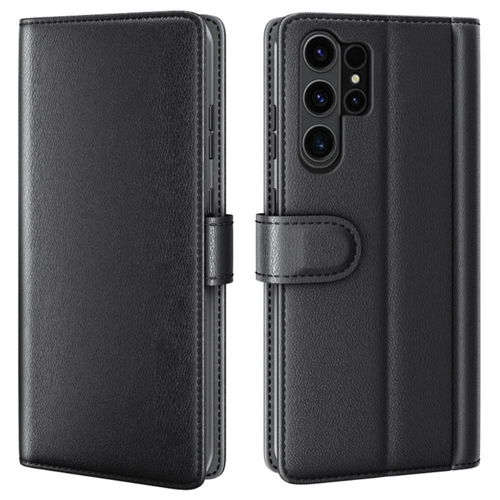 Samsung Galaxy S24 Ultra étui en cuir véritable avec fentes pour cartes de crédit - Noir