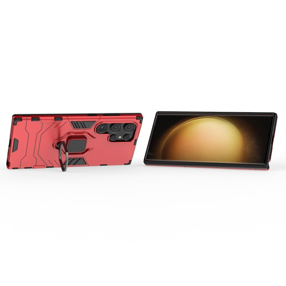 Housse hybride avec béquille et compatibilité avec le support de voiture pour Samsung Galaxy S24 Ultra - Rouge