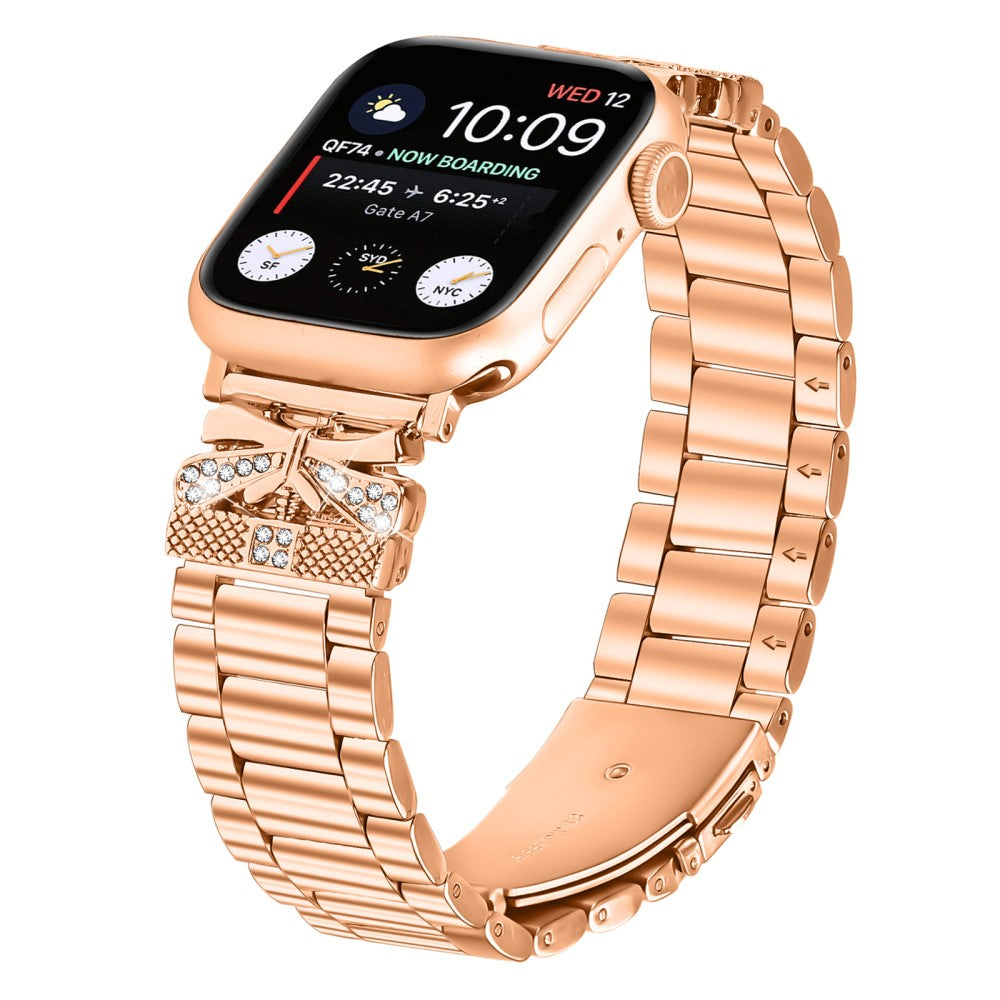 Bracelet de remplacement Apple Watch Series 1-9 49 mm - 45 mm - 44 mm - 42 mm Bracelet de montre décoré de strass papillon - Or Rose