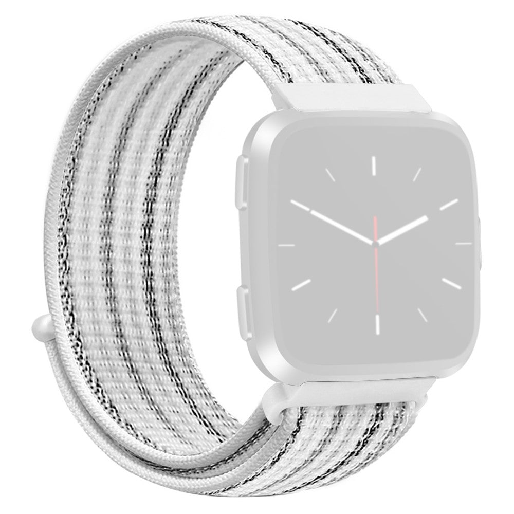 KALEBOL KLB-NLHH-001 Fitbit Versa 3 / Versa 4 / Sense / Sense 2 Horlogeband Nylon Lusband - Wit+Dunne Strepen
