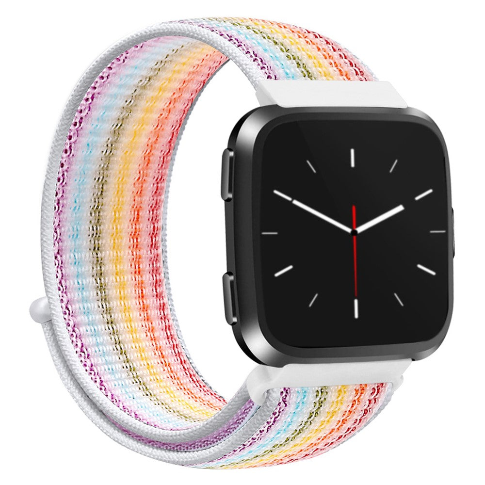 KALEBOL KLB-NLHH-001 Fitbit Versa 3 / Versa 4 / Sense / Sense 2 Horlogeband Nylon Lusband - Regenboog+Dunne Strepen
