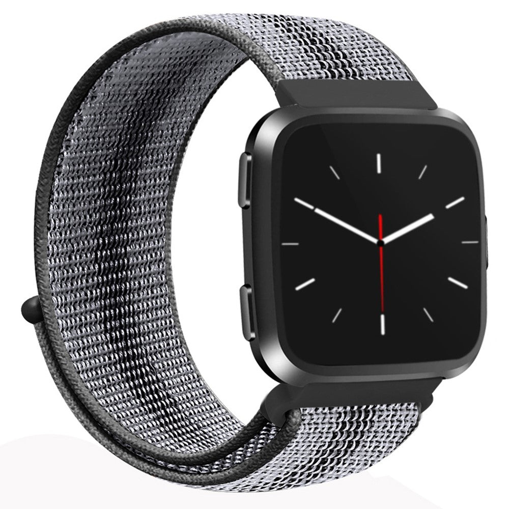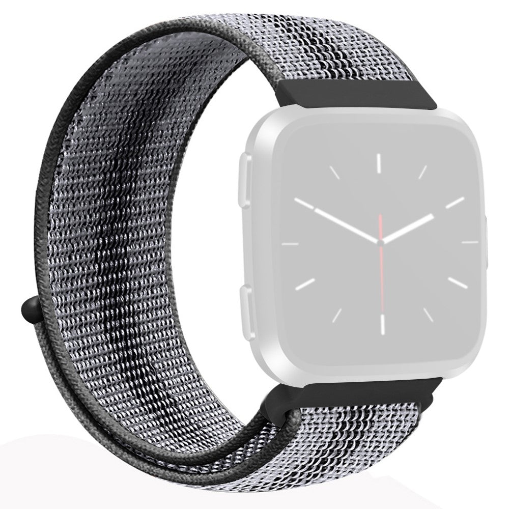 KALEBOL KLB-NLHH-001 Bracelet montre Fitbit Versa 3 / Versa 4 / Sense / Sense 2 Bracelet boucle en nylon - Noir Rayé