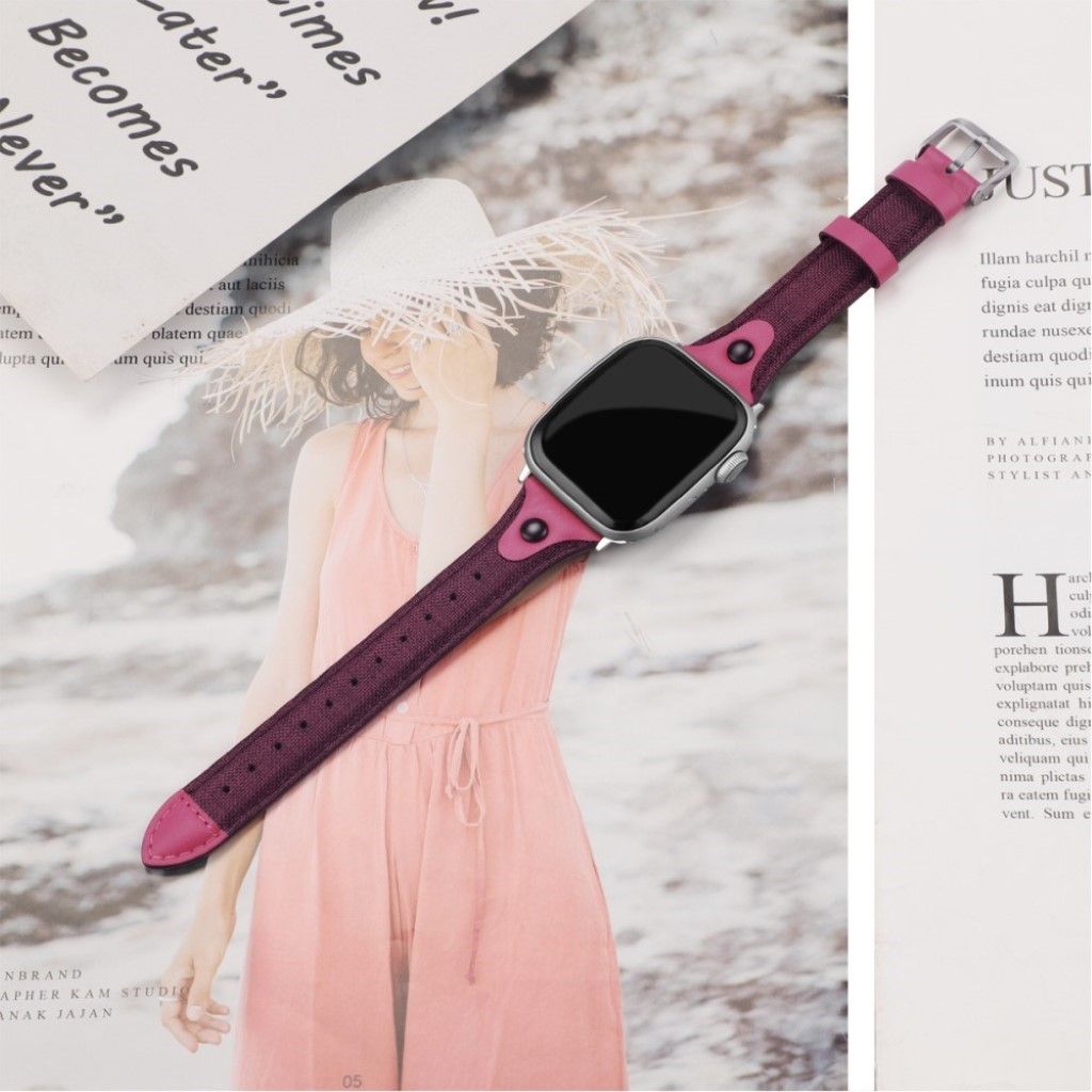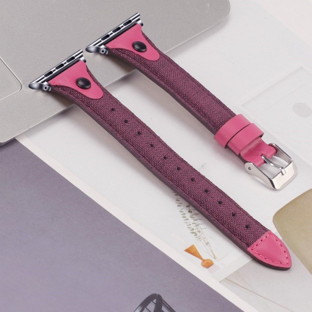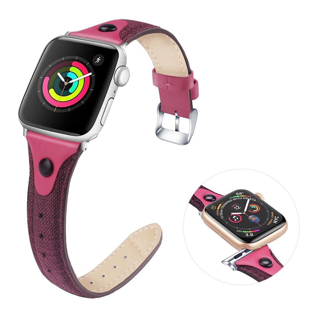 Apple Watch Series 5 / 4 44mm bracelet de montre en cuir véritable en toile - Violet / Rose