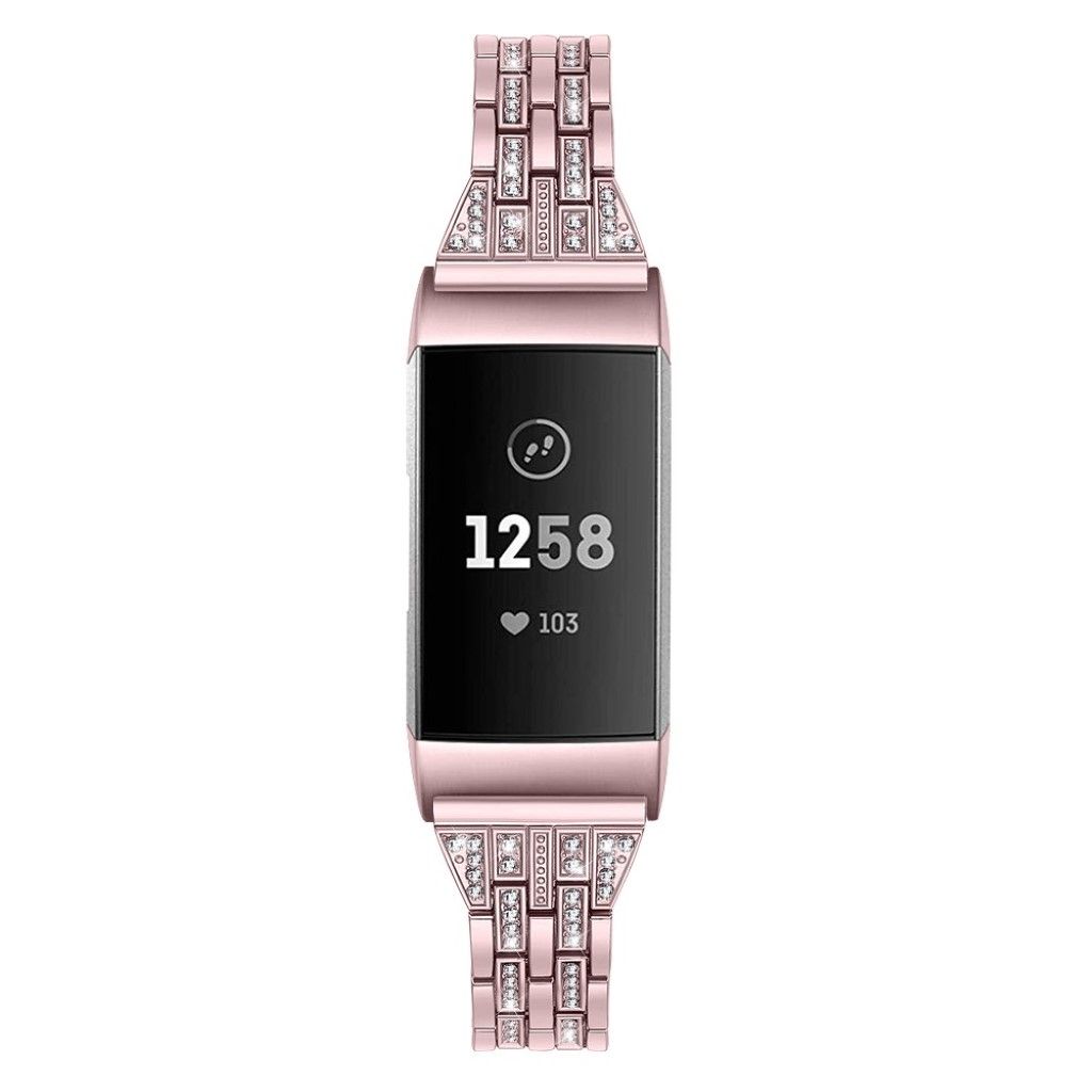 Bracelet de montre Fitbit Charge 3 en acier inoxydable avec strass - Rose