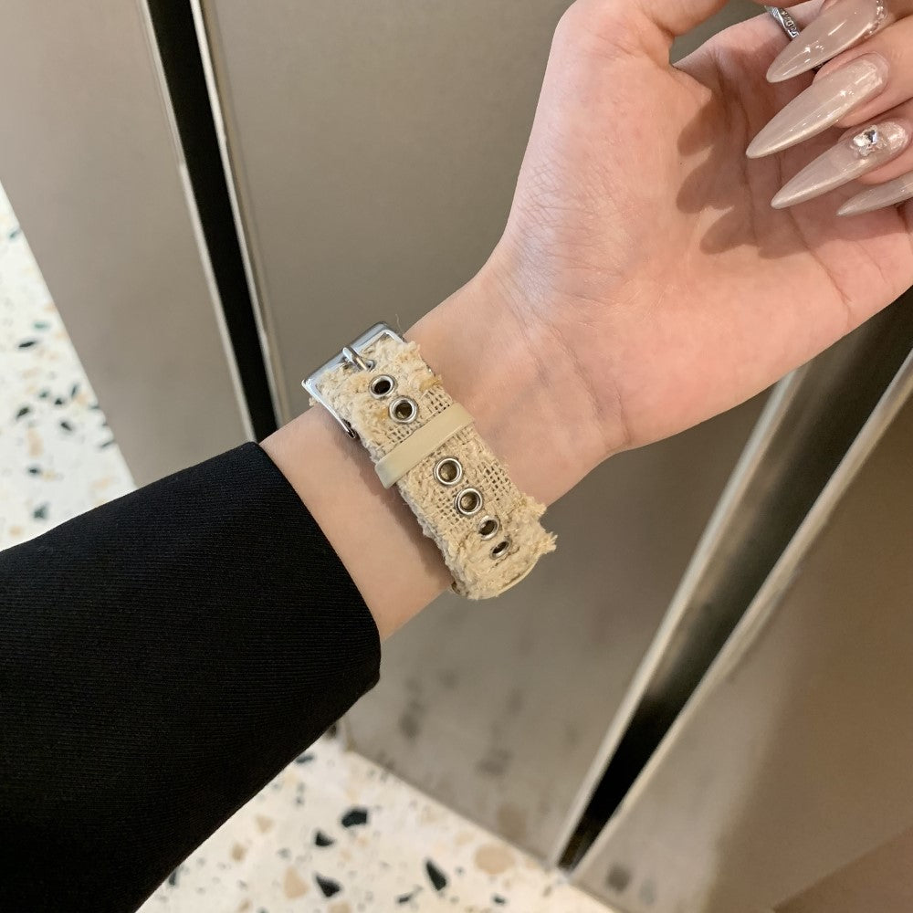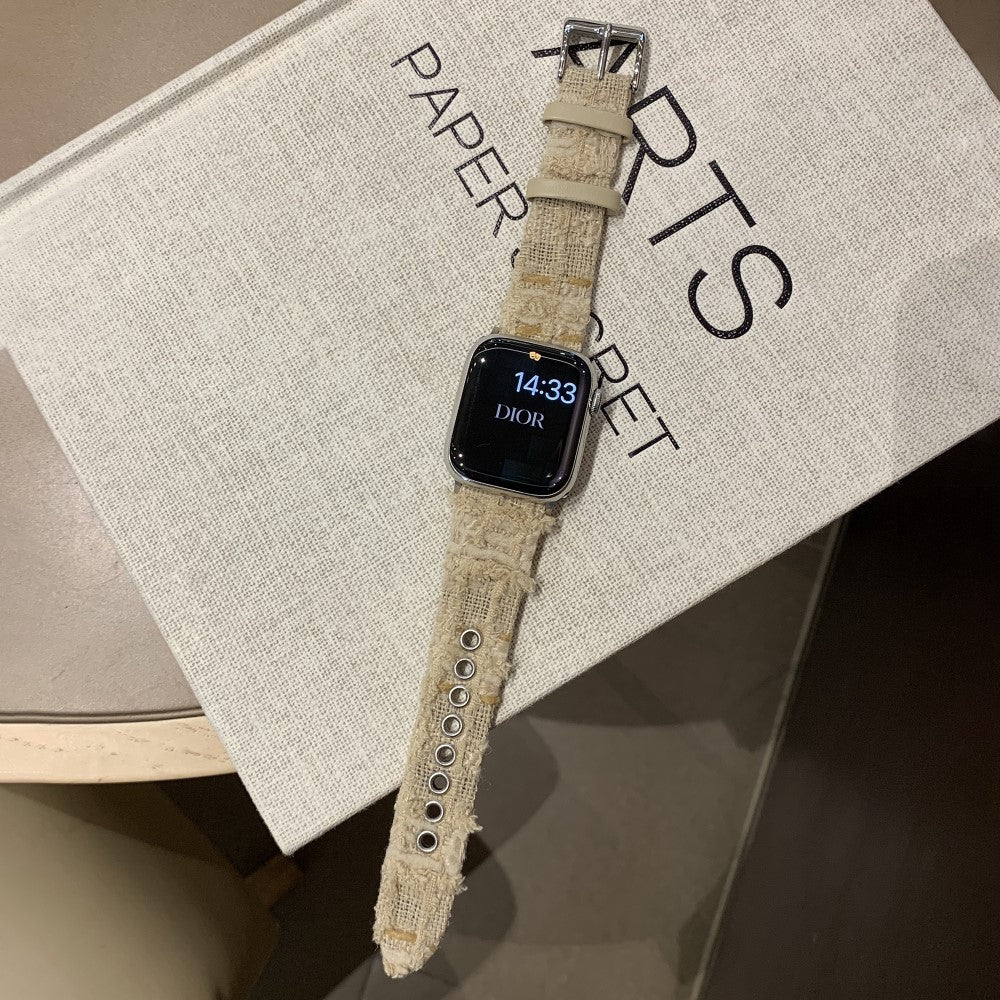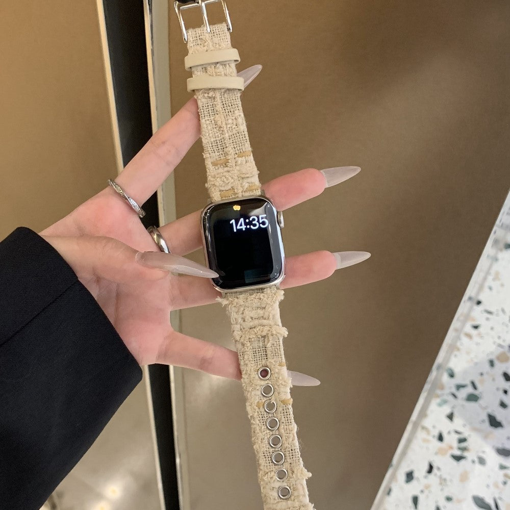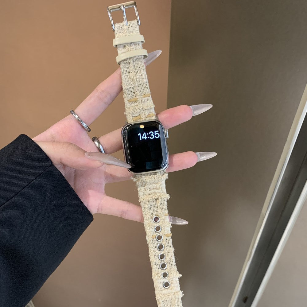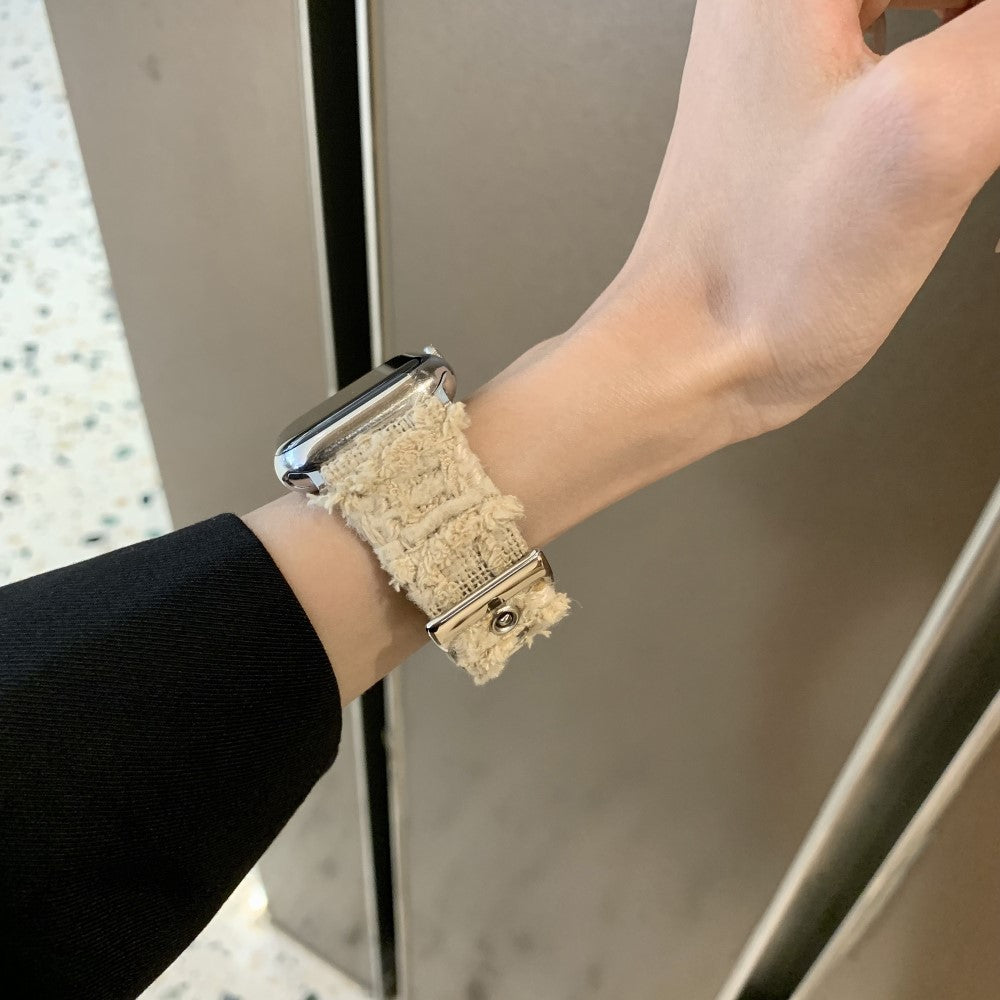 Bracelet en cuir de vachette véritable et laine Apple Watch Series 10 46mm - Blanc Crème
