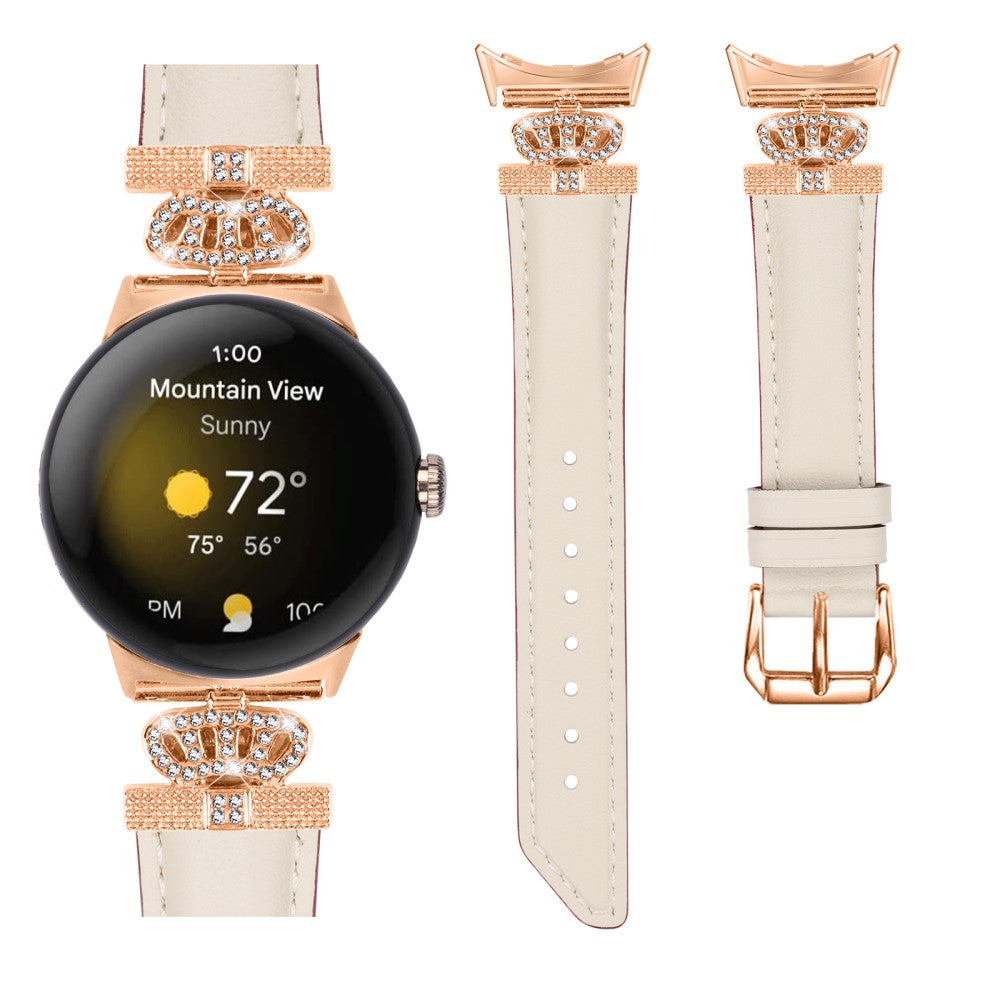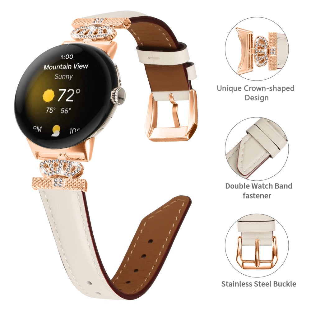Bracelet montre boucle or rose Google Pixel Watch / Pixel Watch 2 Crown Rhinestone Genuine Cowhide Leather Strap - Apricot