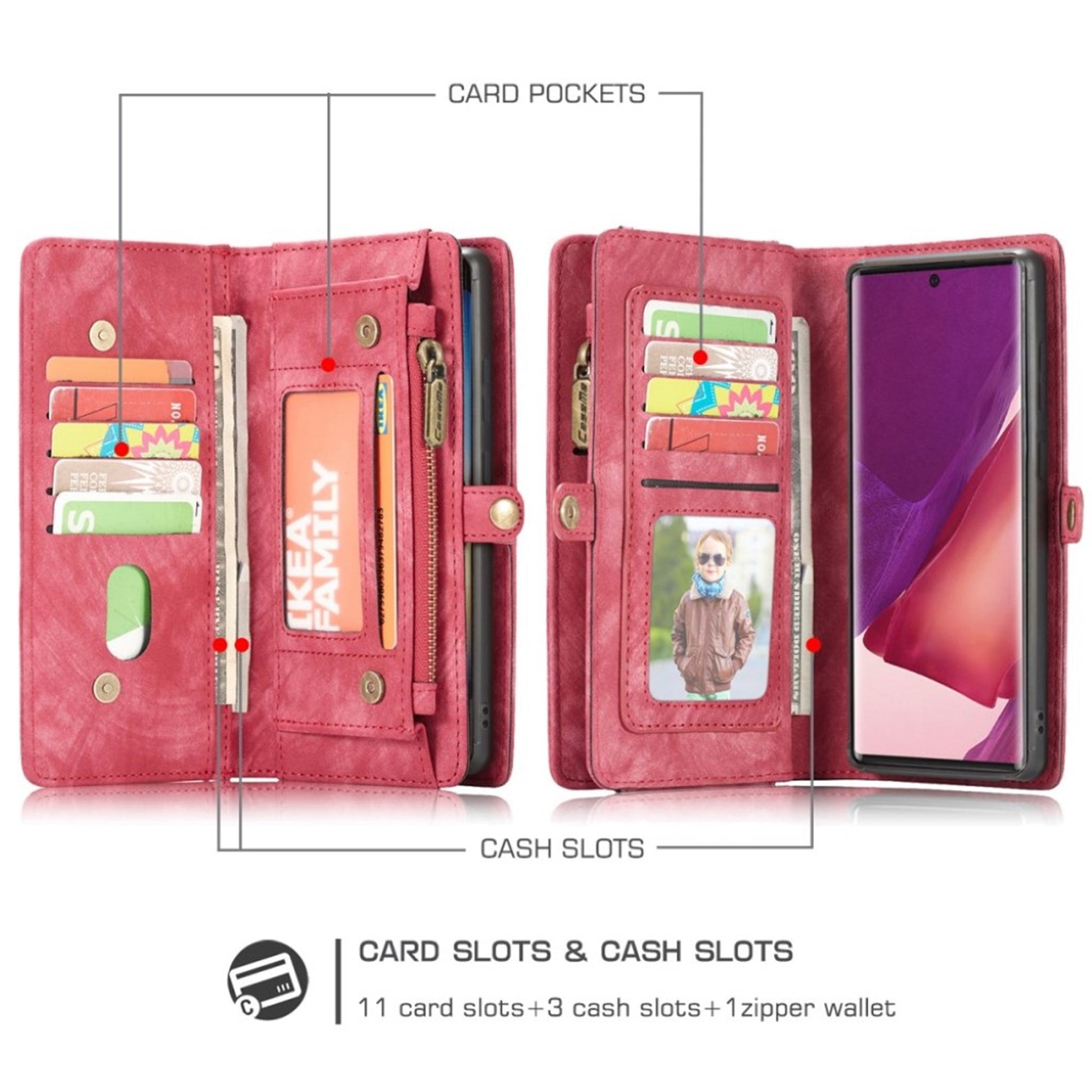 CaseMe Samsung Galaxy S21 Ultra Portefeuille à fermeture éclair - Rouge
