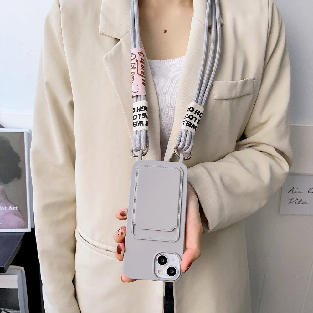 Coque en silicone liquide pour iPhone 15 Plus avec dragonne - Café