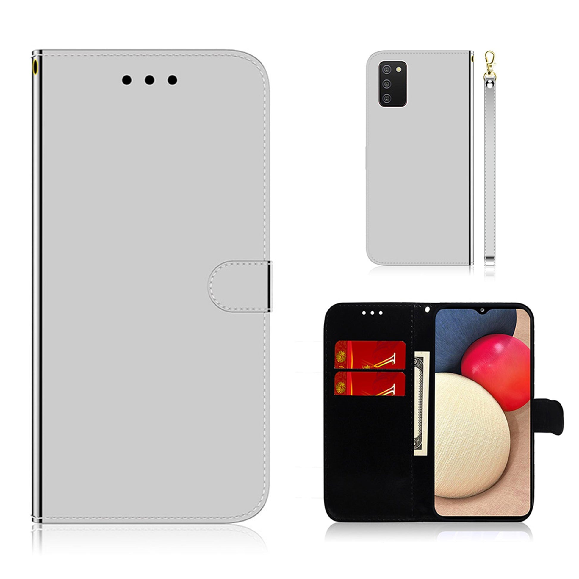 Étui à rabat miroir pour Samsung Galaxy A02s - Argent