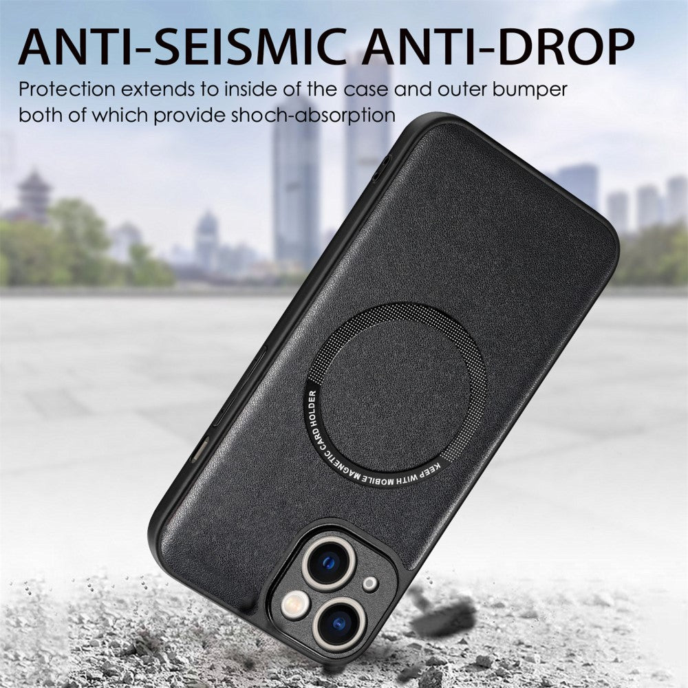 Étui compatible MagSafe pour iPhone 15 Plus en cuir PU recouvert de PCTPU - Marron
