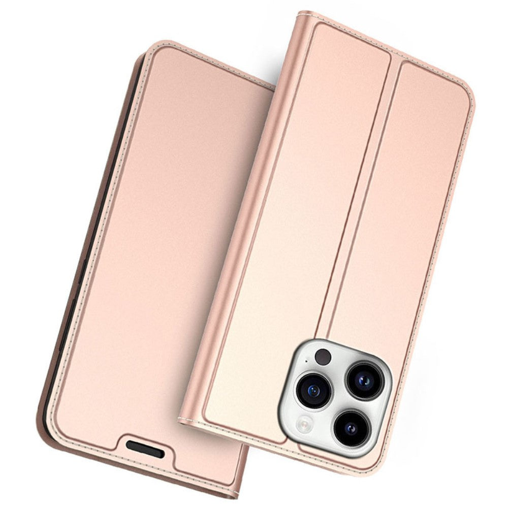 Étui en cuir style portefeuille pour iPhone 15 Pro - Rose Gold