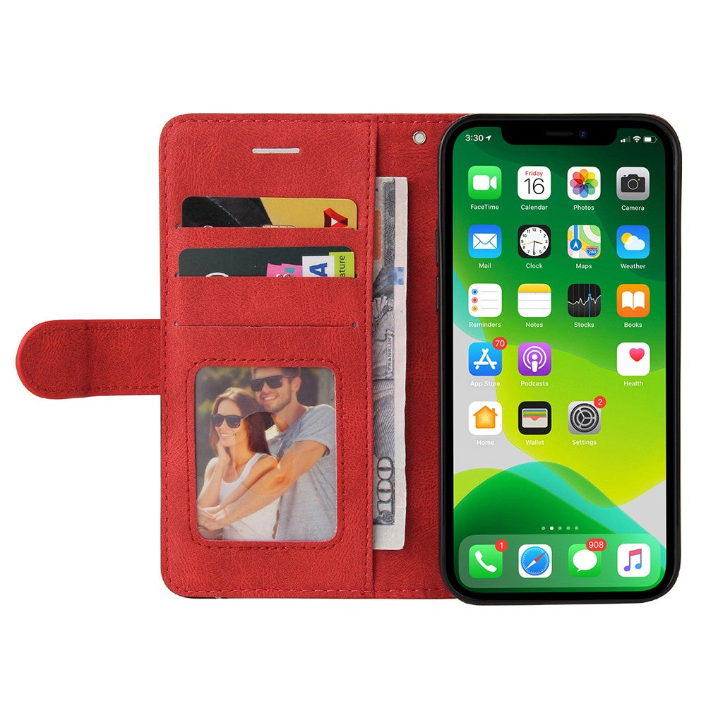 Étui en cuir texturé avec sangle pour iPhone 15 - Rouge
