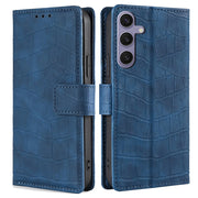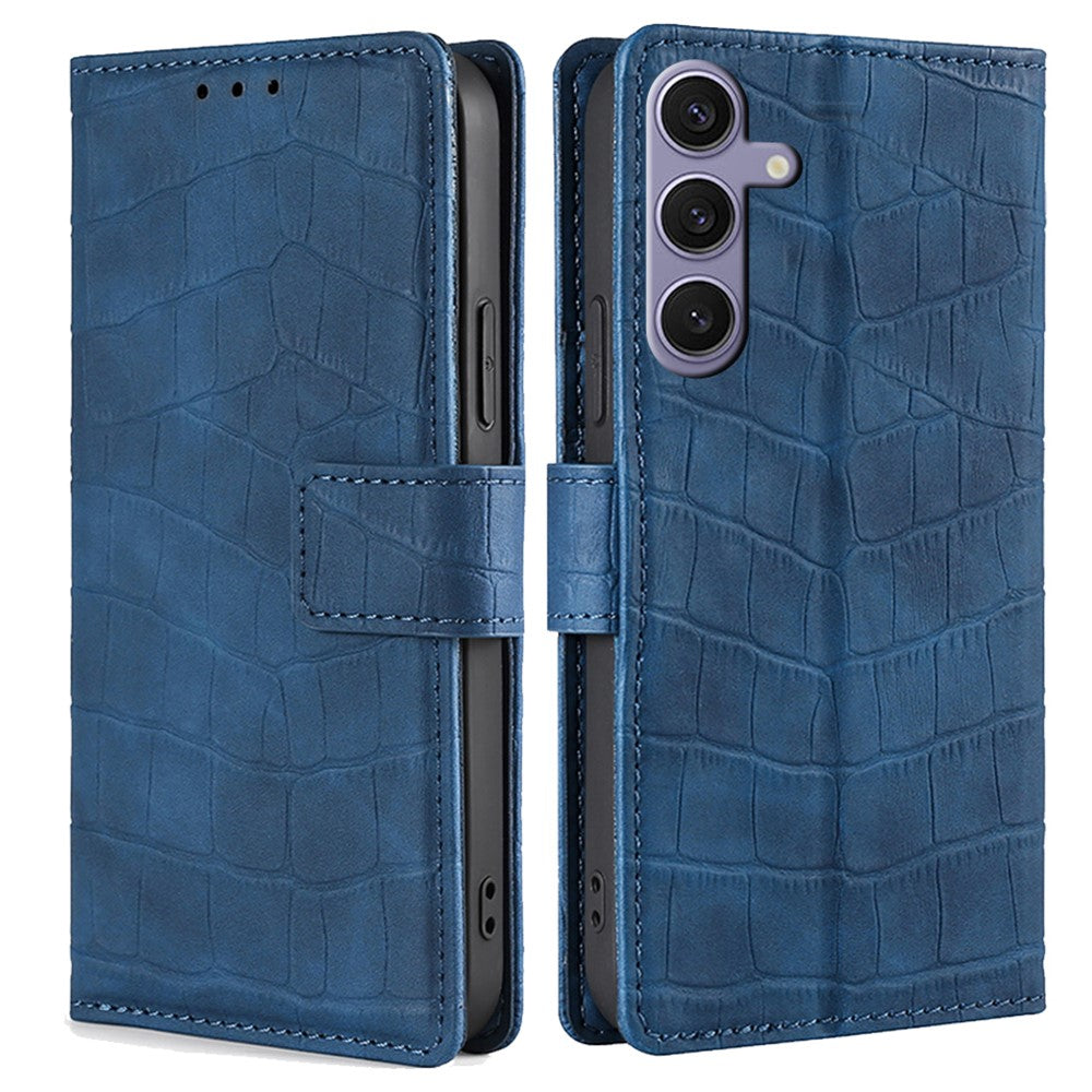 Étui en cuir texturé style crocodile pour Samsung Galaxy S24 Plus - Bleue