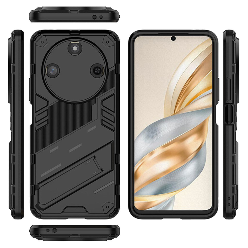 La béquille comporte deux surfaces plates, ce qui permet au téléphone de se tenir verticalement ou horizontalement Cette polyvalence offre aux utilisateurs de multiples options pour une utilisation mains libres, en mettant l'accent sur un design avant-gardiste et fonctionnel.