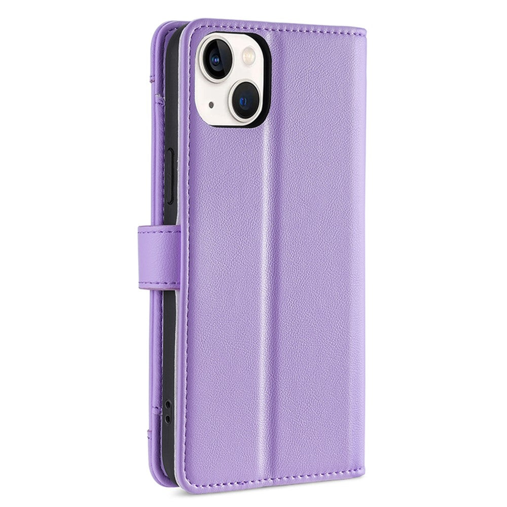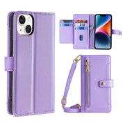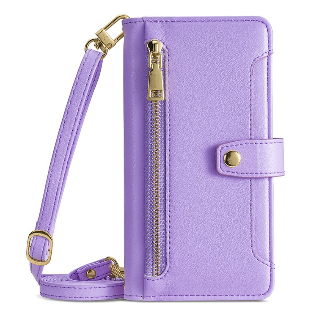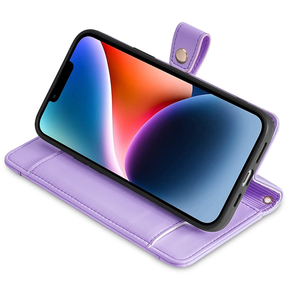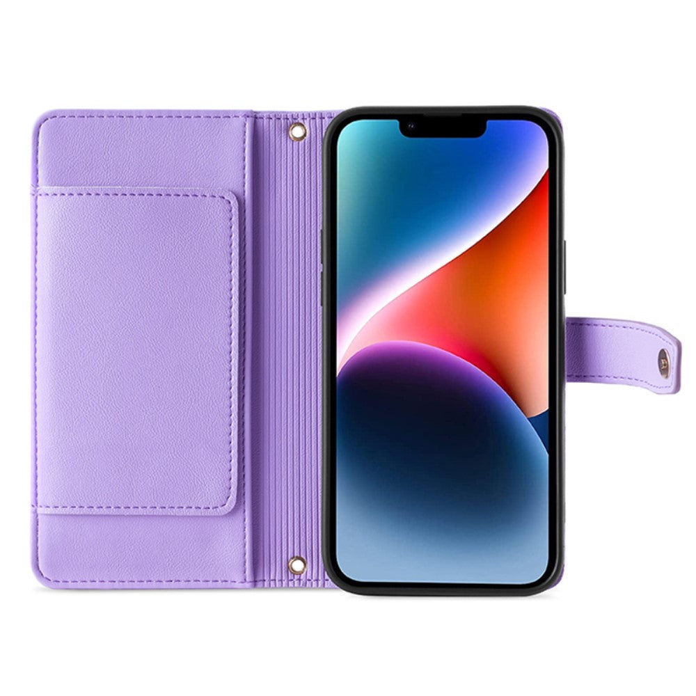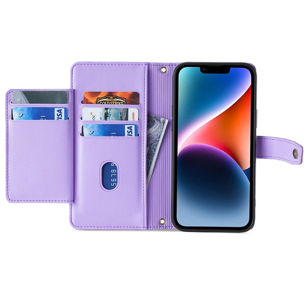 Étui portefeuille à fermeture éclair en cuir végétal pour iPhone 15 - Violet