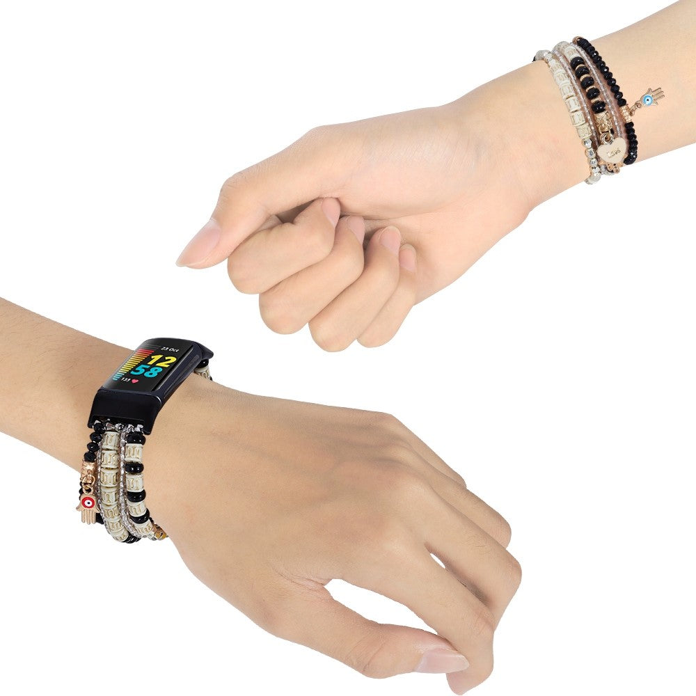 Fitbit Charge 5 kralen en handhanger horlogebandje - Zwart