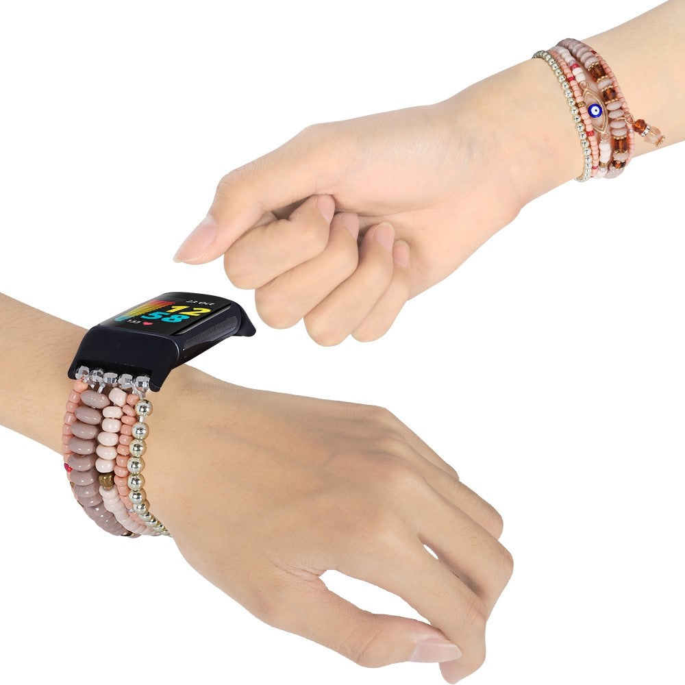 Fitbit Charge 5 stijlvolle kralen met oogpatroon horlogebandje - Koffie