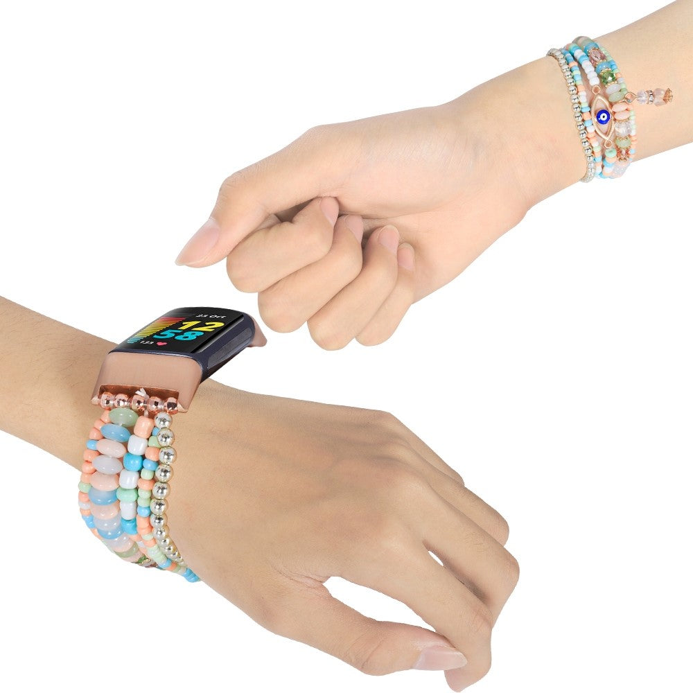 Fitbit Charge 5 stijlvolle kralen met oogpatroon horlogebandje - Roze