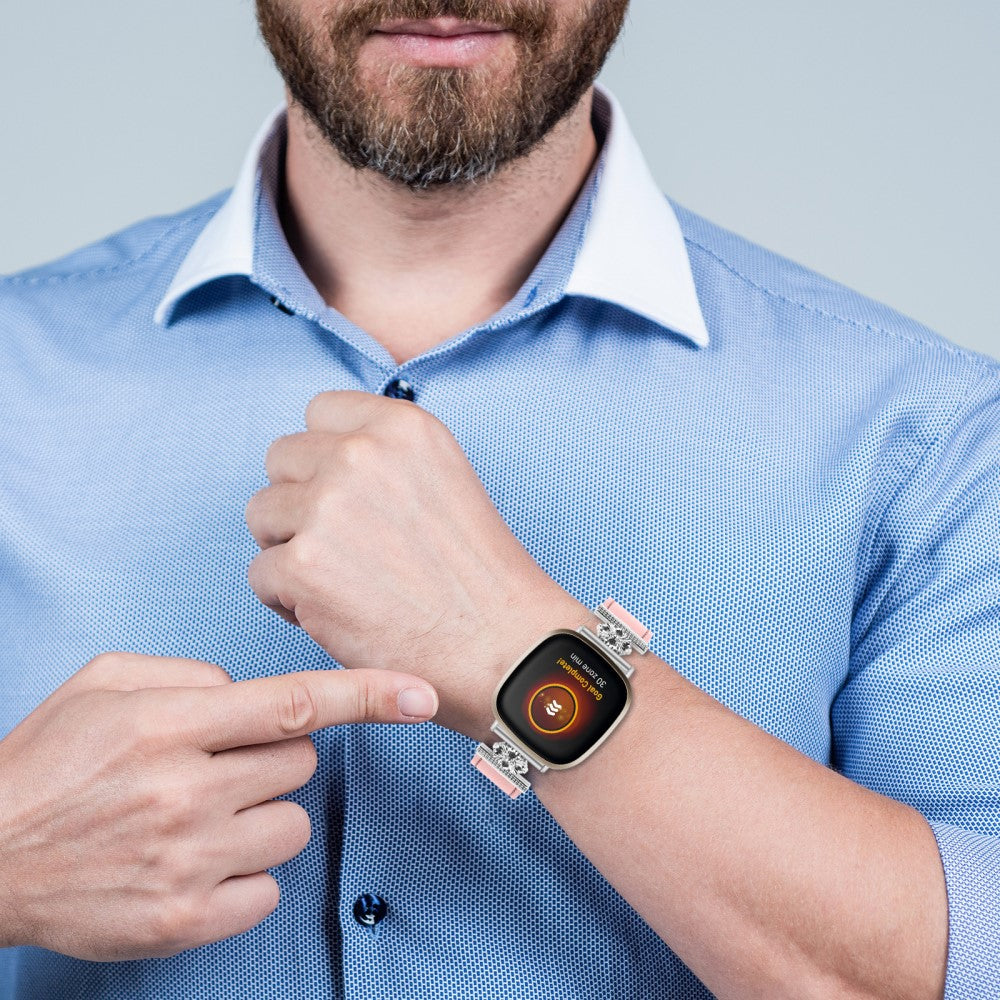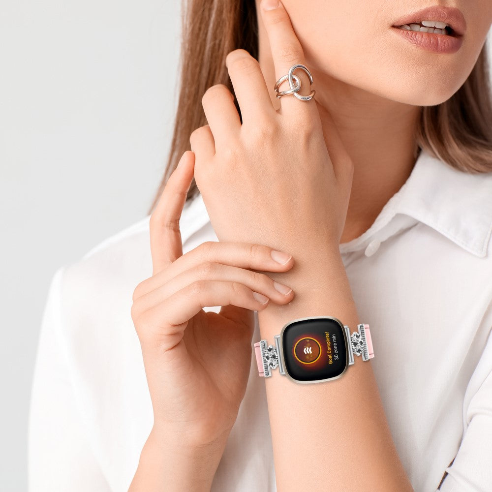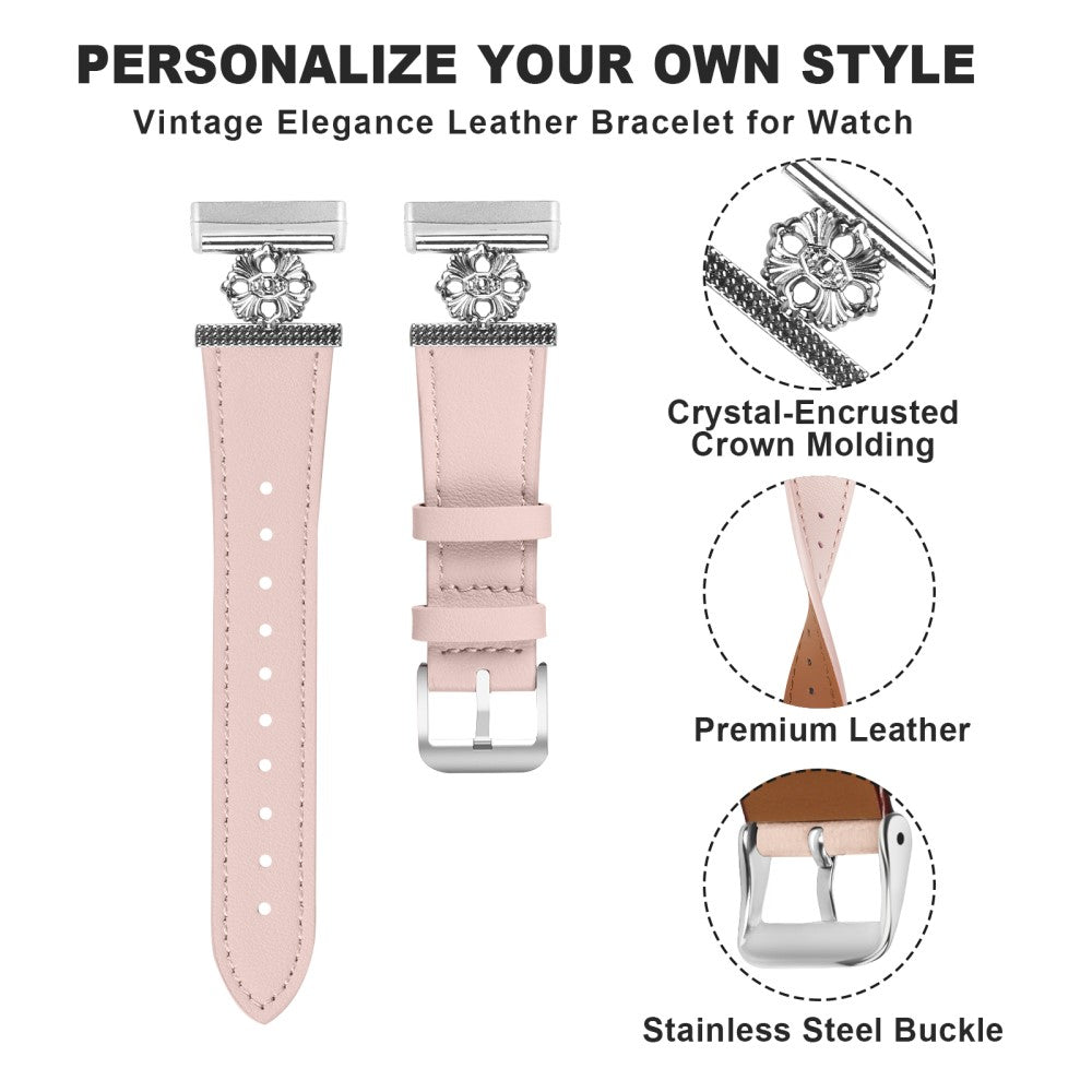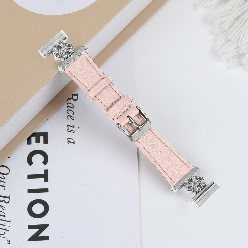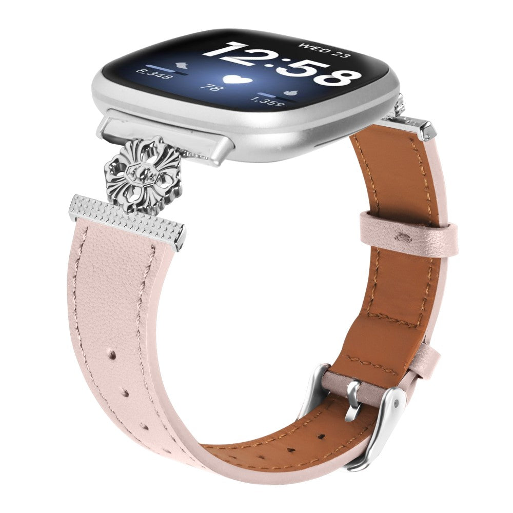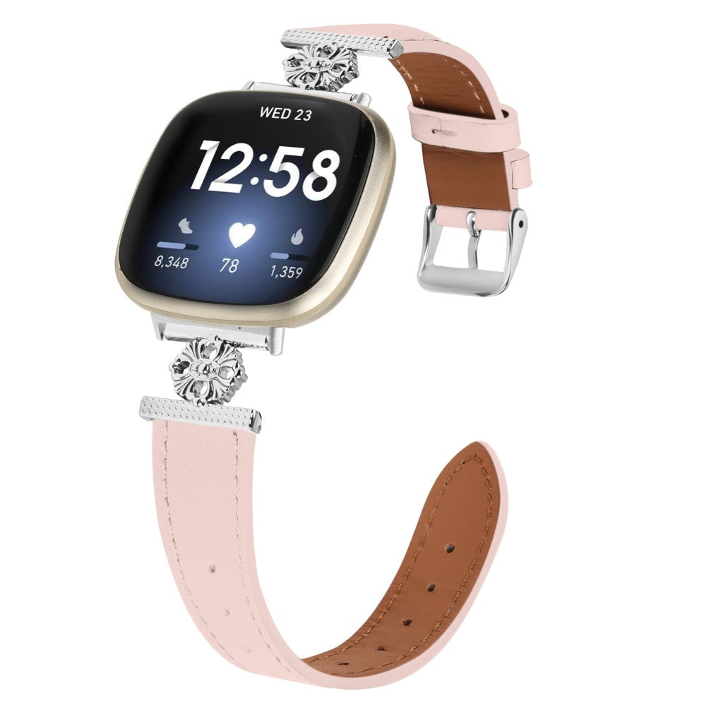 Fitbit Versa 3 / Sense horlogebandje echt koeienleer bloemendecor verstelbaar bandje - Roze