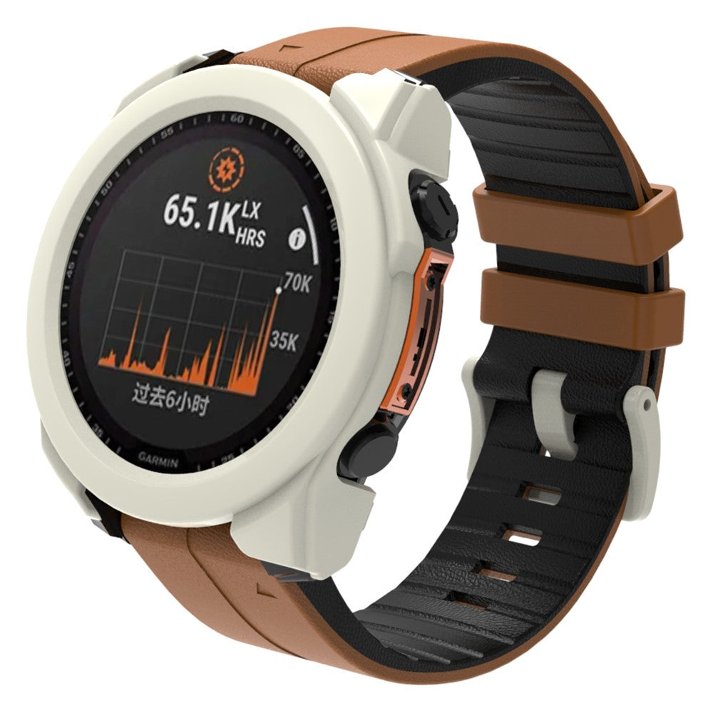 Garmin Fenix 8 51mm PC Cover Horloge Frame Hoesje met Gehard Glazen Schermfolie - Ivoor Wit