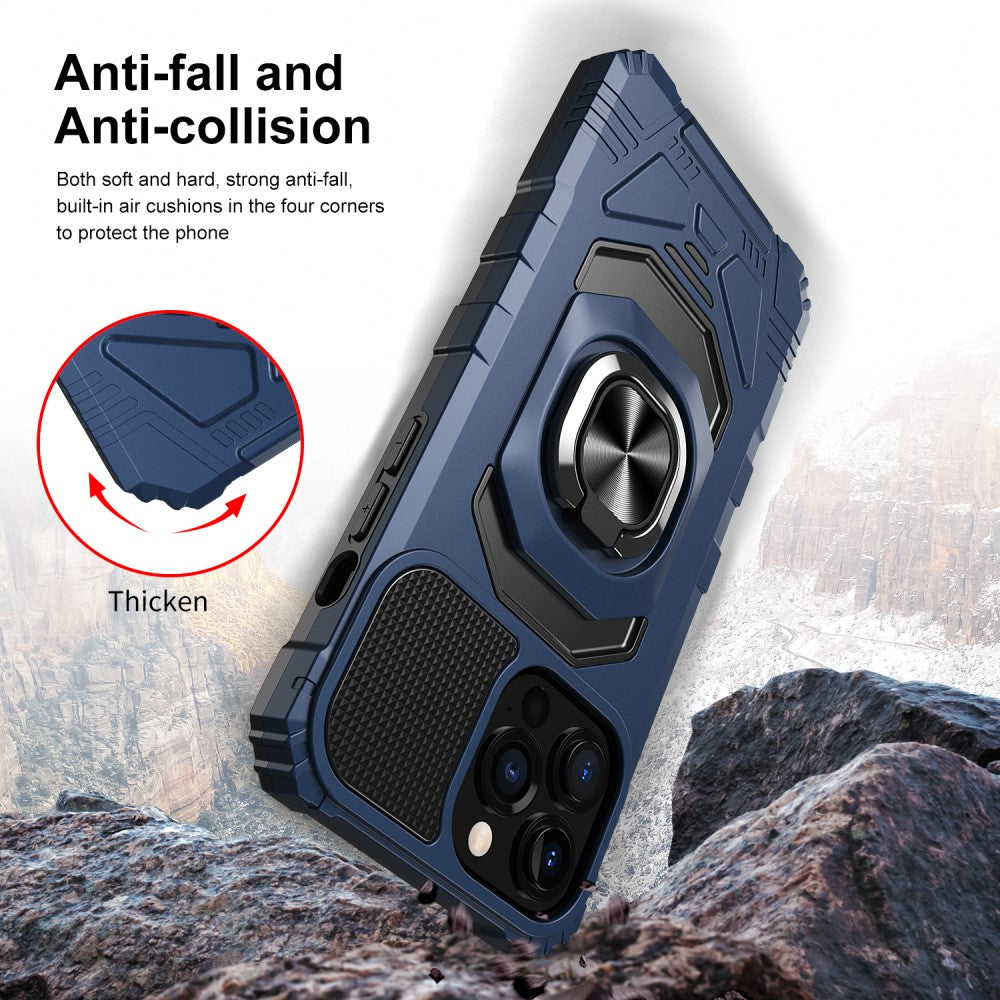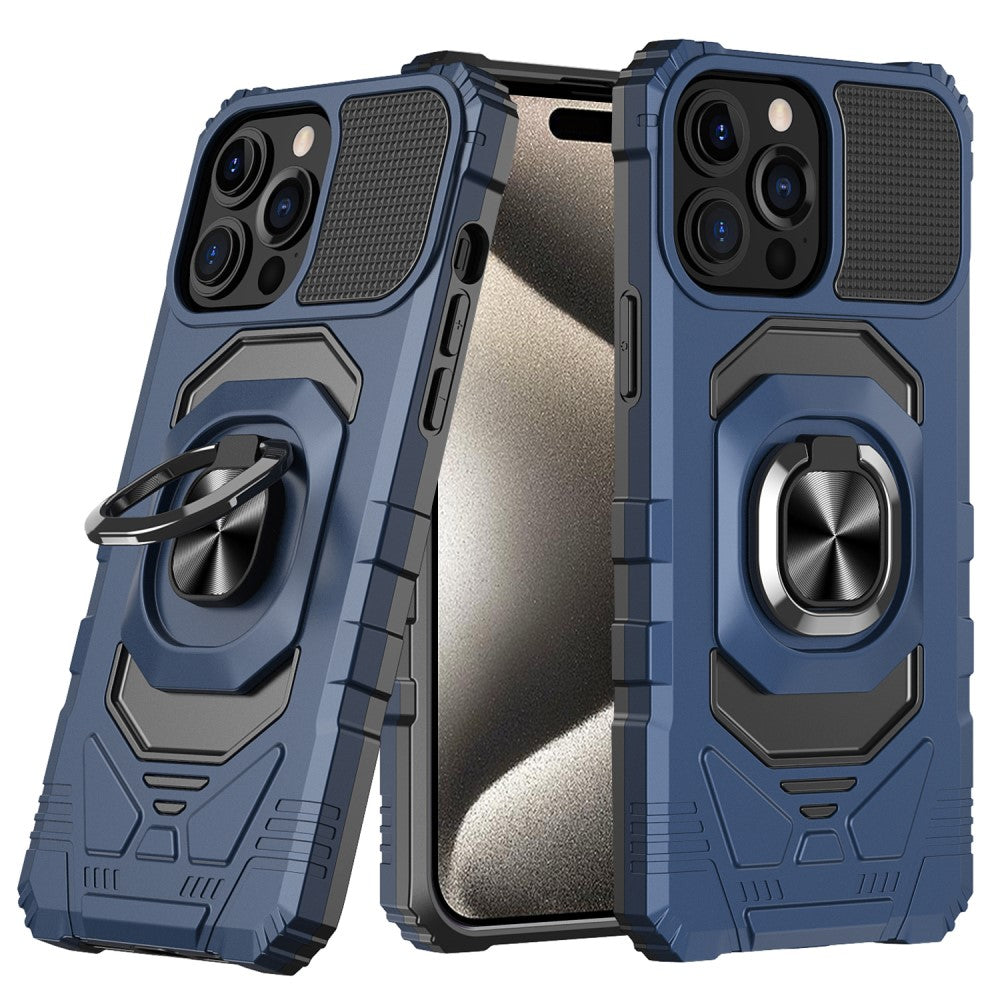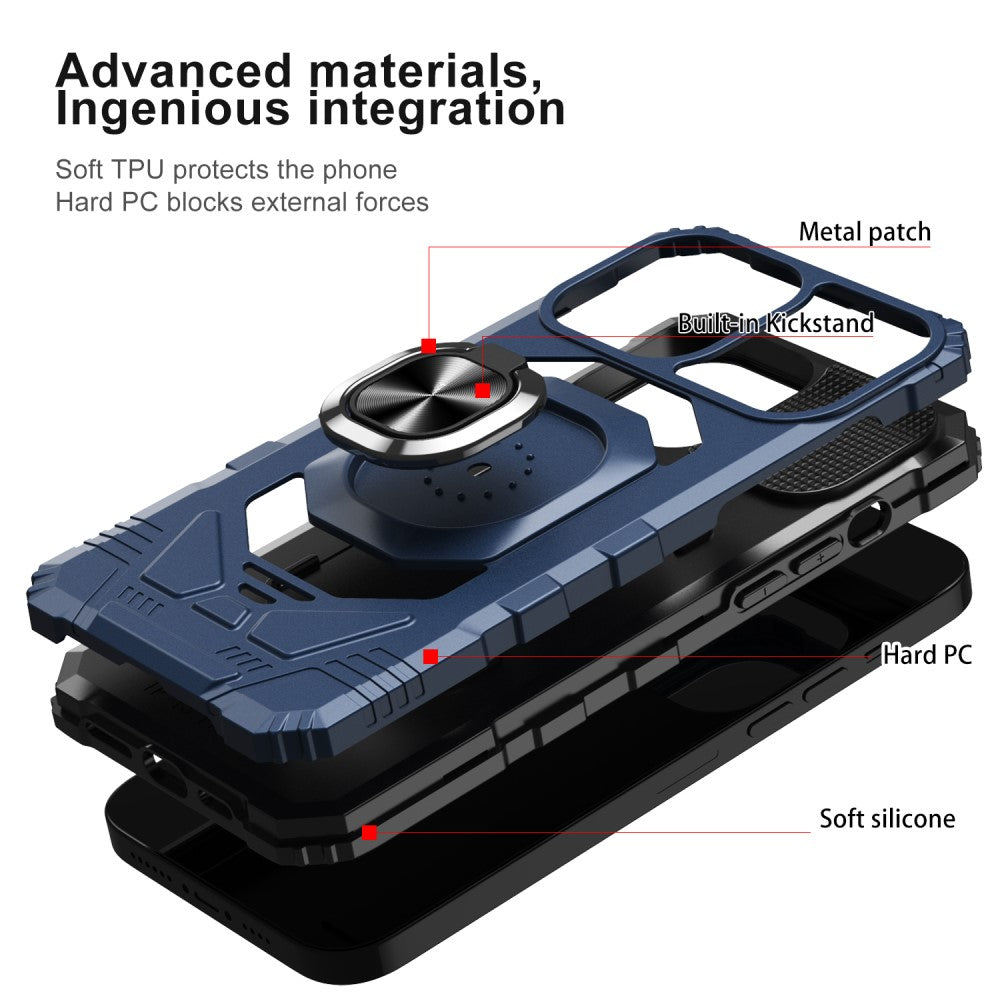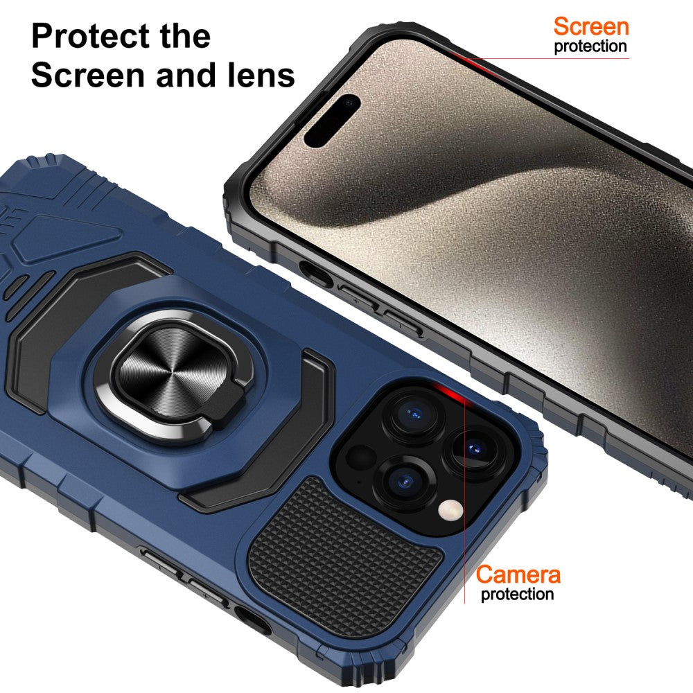 Housse en plastique dur durable pour iPhone 15 Pro avec intérieur souple et béquille - Bleu