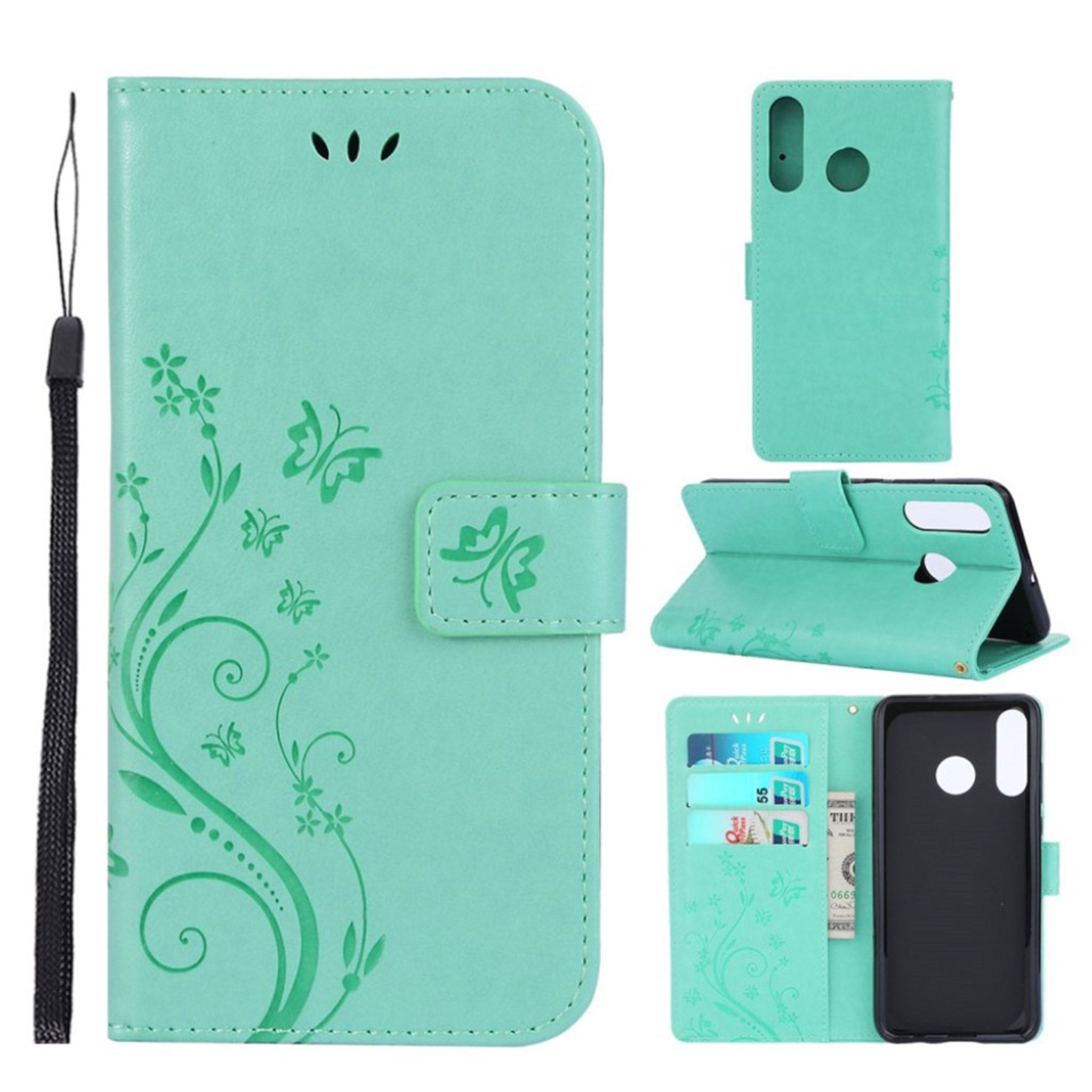 Huawei P30 Lite printti Perhonen Kukka nahkainen suojakotelo - Vihreä