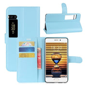 Meizu Pro 7 étui à rabat en cuir PU grain litchi - Bleu