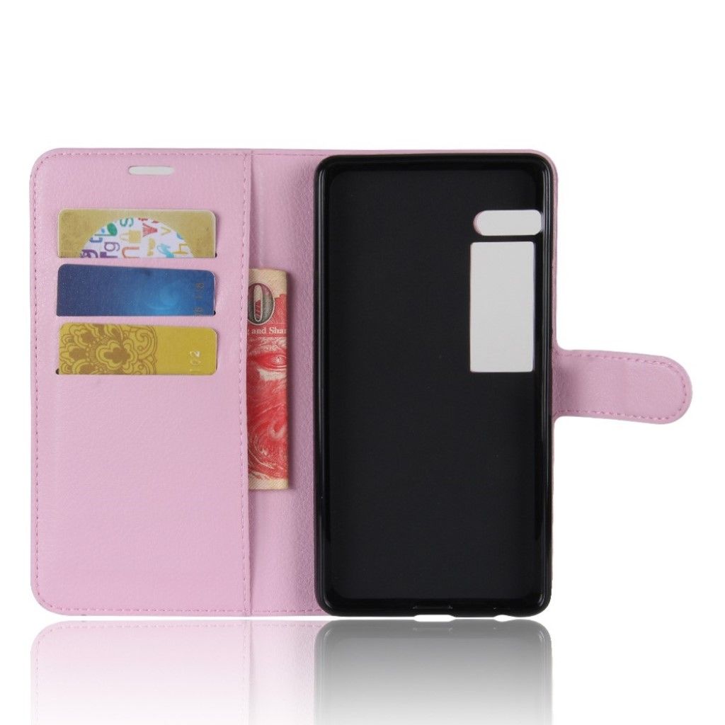 Meizu Pro 7 étui à rabat en cuir PU grain litchi - Rose