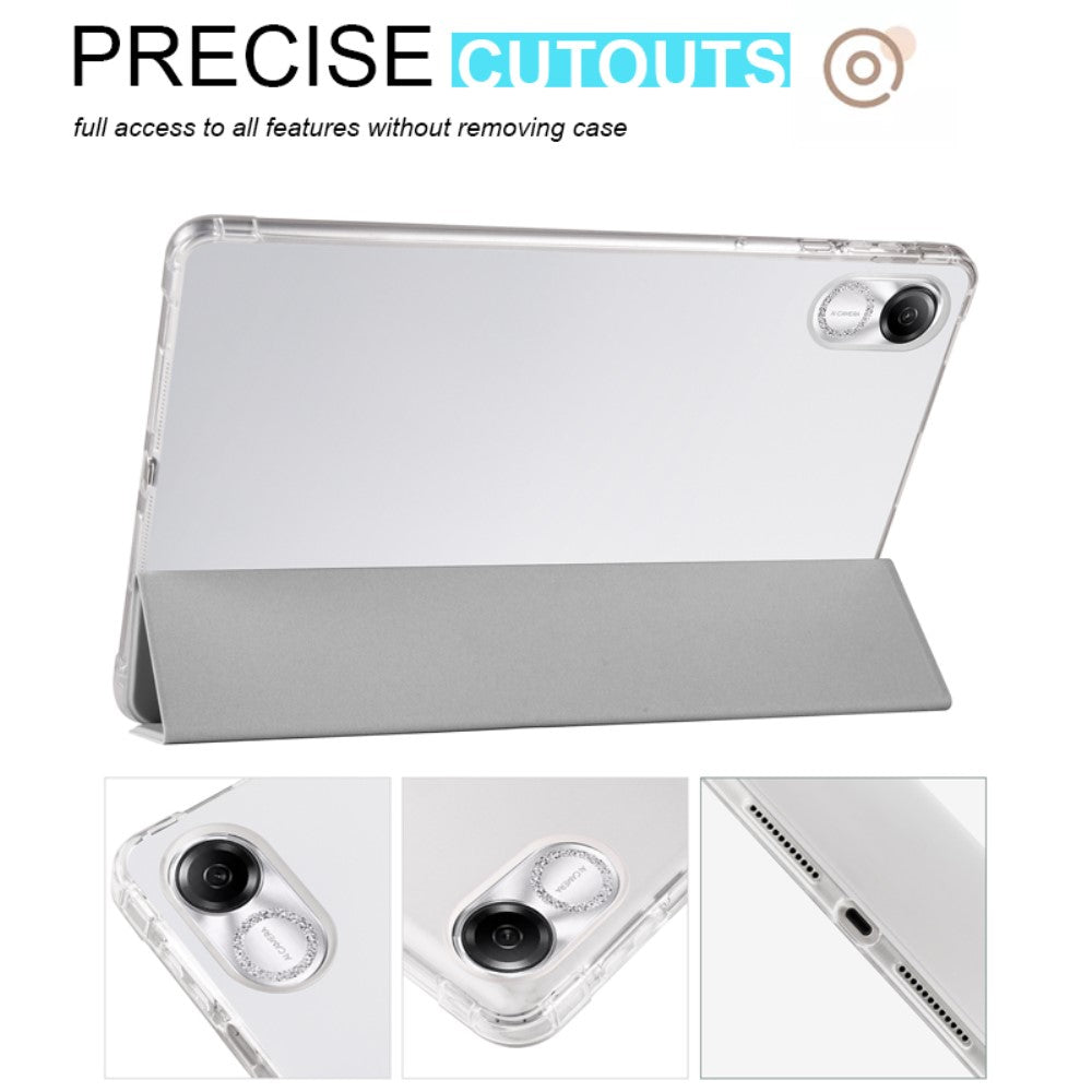Honor Pad X8 Pro / Pad X9 Trifold Stand Tablet Case Pen Slot Vegan Leather Transparent Flexible Back Cover - Grey