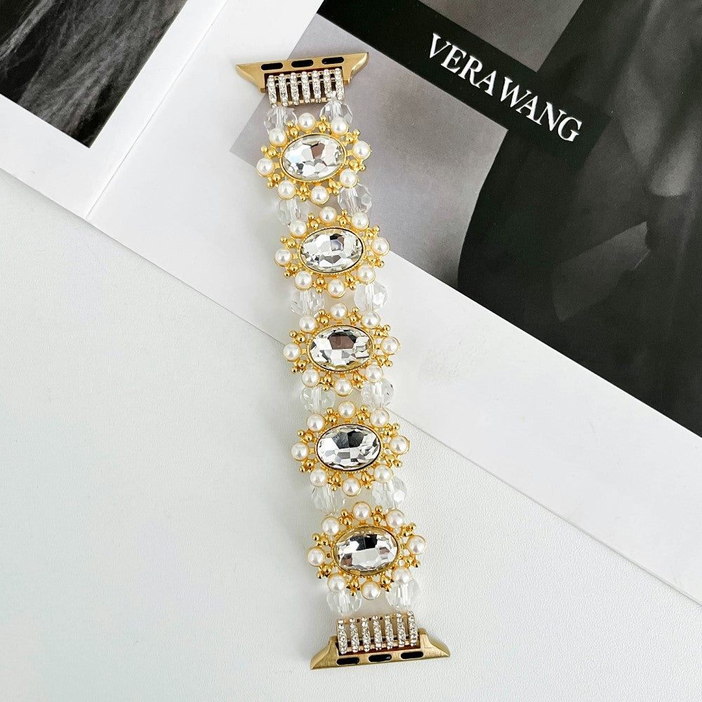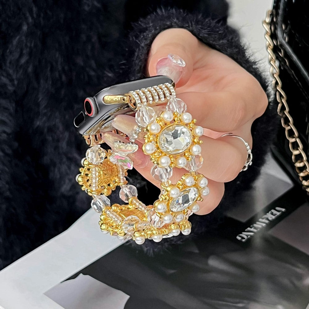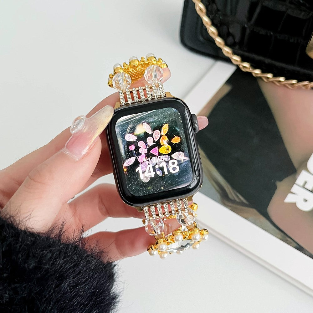 Pour Apple Watch Series 9 8 7 41mm / 6 5 4 SE (2023) SE (2022) SE 40mm / 3 2 1 38mm Bracelet perle décorative - Or