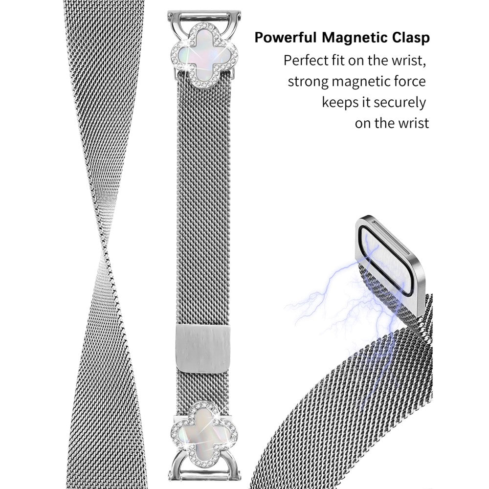 Samsung Galaxy Watch3 41mm Milanese Band Bracelet de montre magnétique en acier inoxydable avec connecteur en trèfle, Taille : S - Argent / Couleur