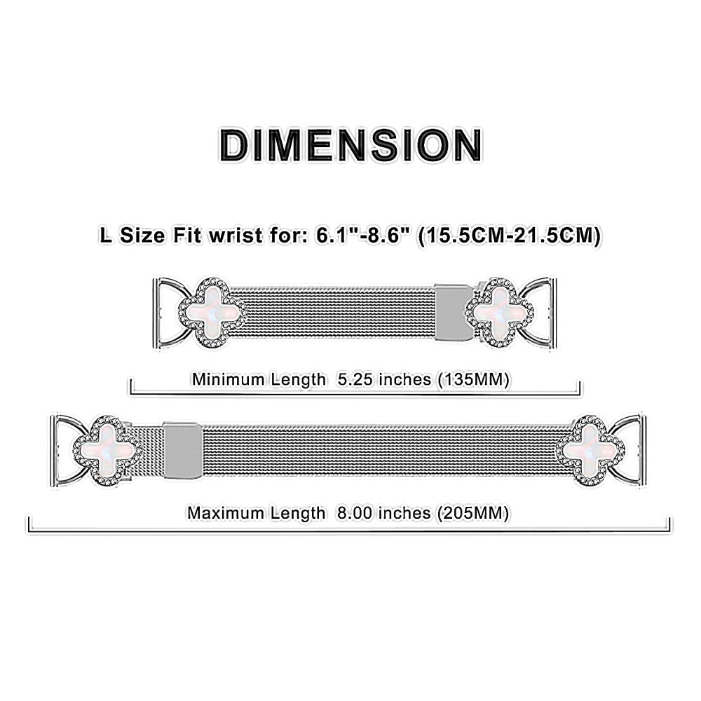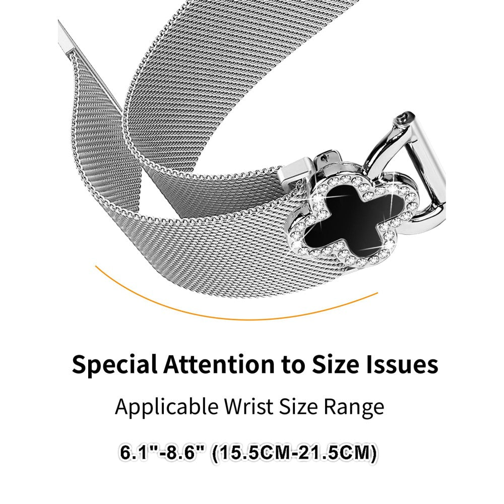 TicWatch E Milanese Band Metal Magnetic Watch Strap Clover Decor, Size : L - Argent / Noir