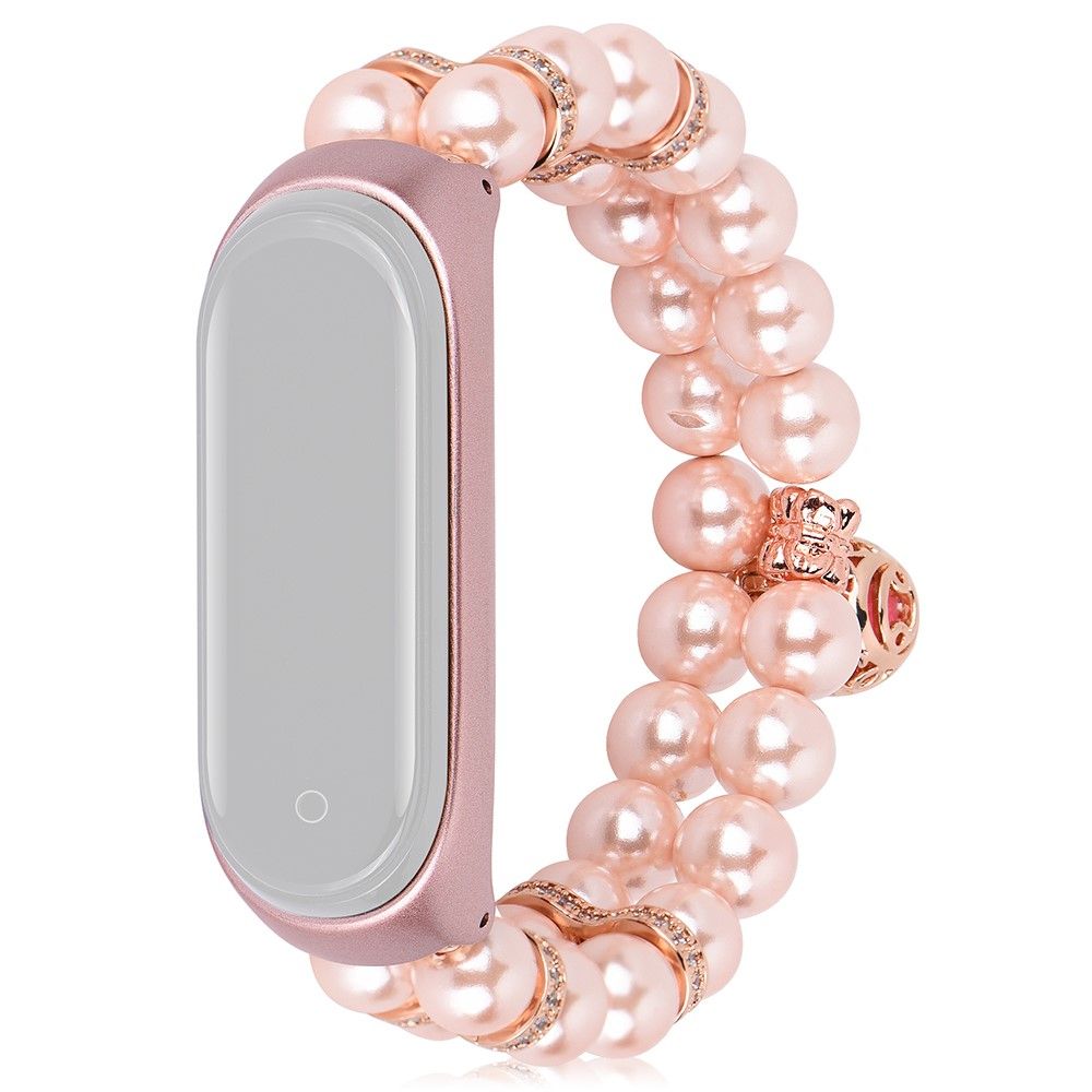 Xiaomi Mi Smart Band 6 / 5 dubbele rij kunstparel horlogeband - Roze