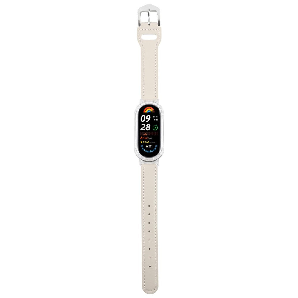 Xiaomi Smart Band 9 Boîtier de montre résistant aux chocs intégré Bracelet de montre en cuir ultra-fibre à ouverture rapide - Transparent / Beige