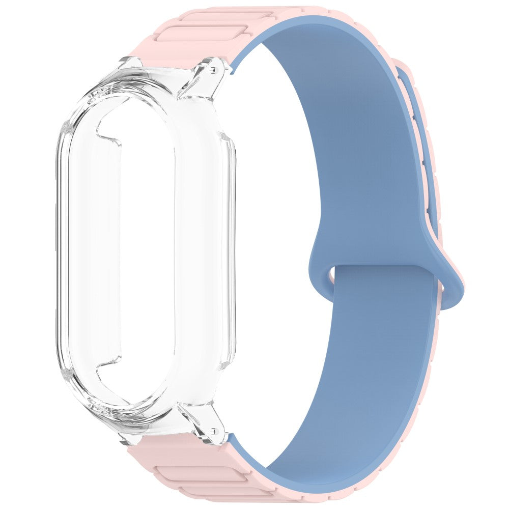 Xiaomi Smart Band 9 NFC / 9 Bracelet en silicone bicolore avec cadre de protection résistant aux chocs - Rose+Bleu+Clear
