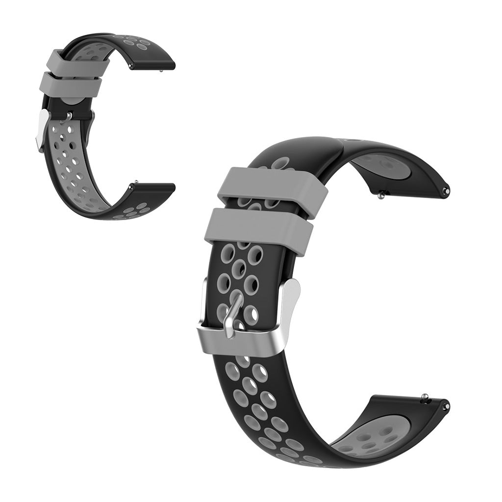 22mm Universele dubbele kleur + lus siliconenn horlogeband - Zwart / Grijs