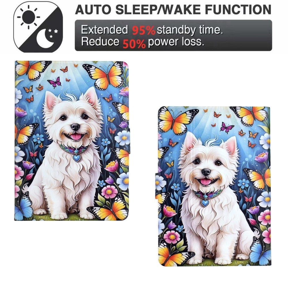 Amazon Kindle Paperwhite 6 (2024) Standhoes met patroonprint Tablethoes van leer met automatische slaapstandaard / ontwaken - Hond
