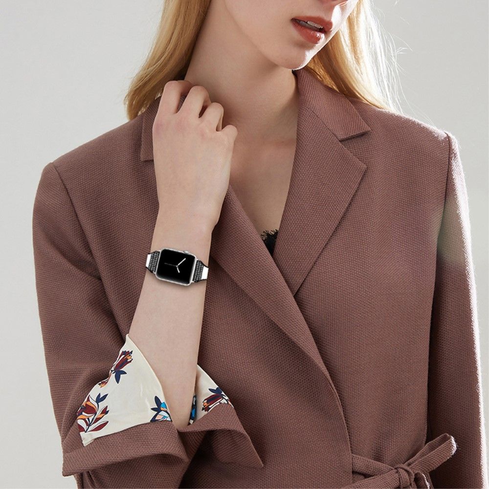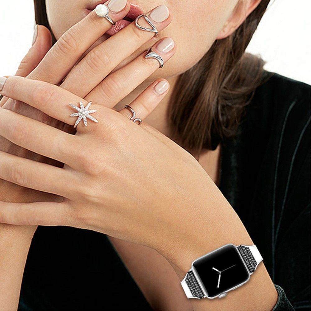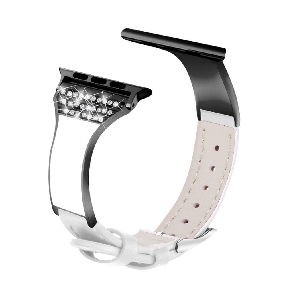 Apple Watch (41mm) strass-versiering horlogebandje van echt leer - Wit