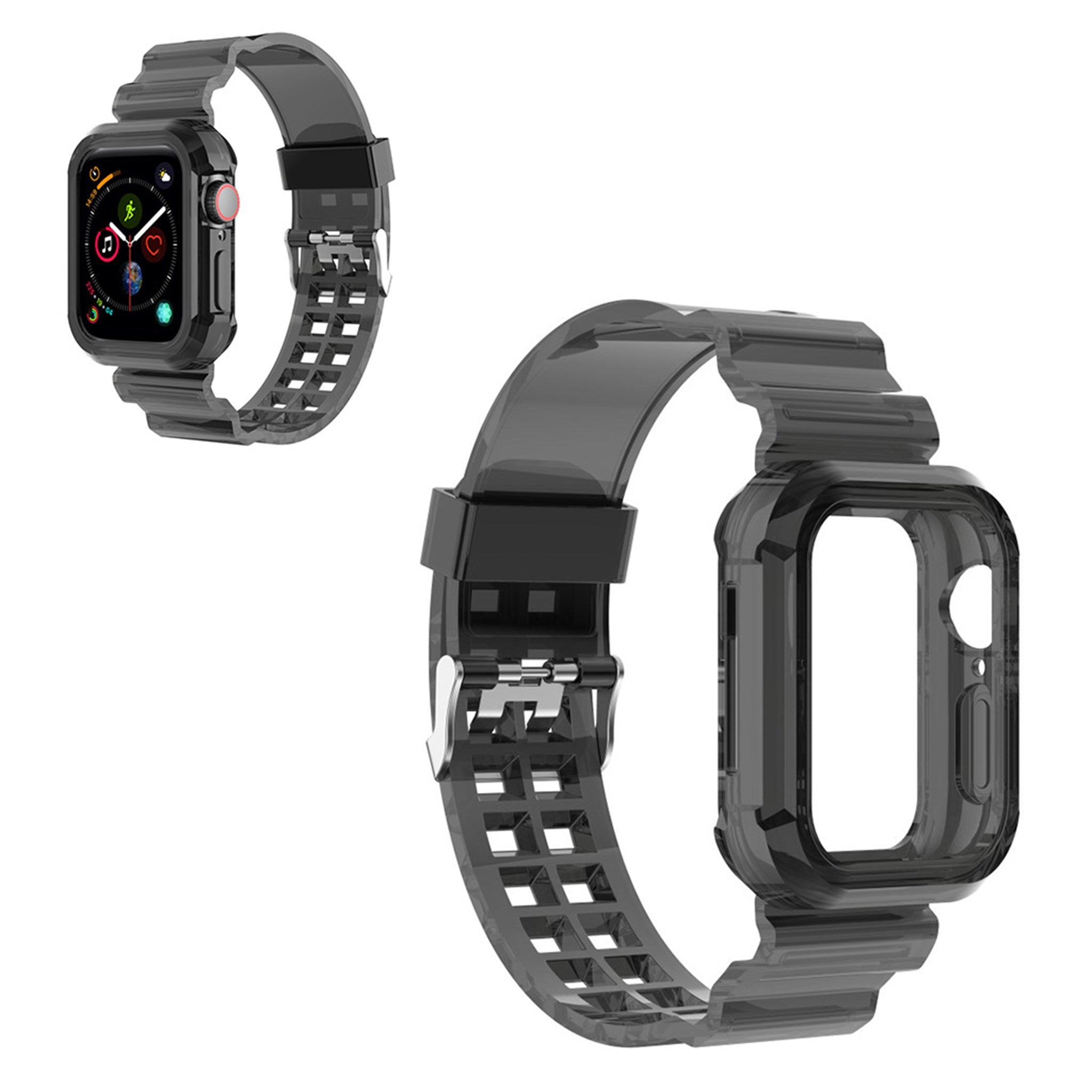 Apple Watch Series 6 / 5 44mm siliconenn omlijste horlogeband - Transparant Zwart
