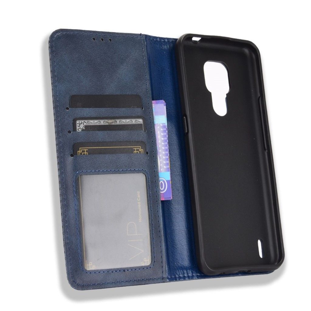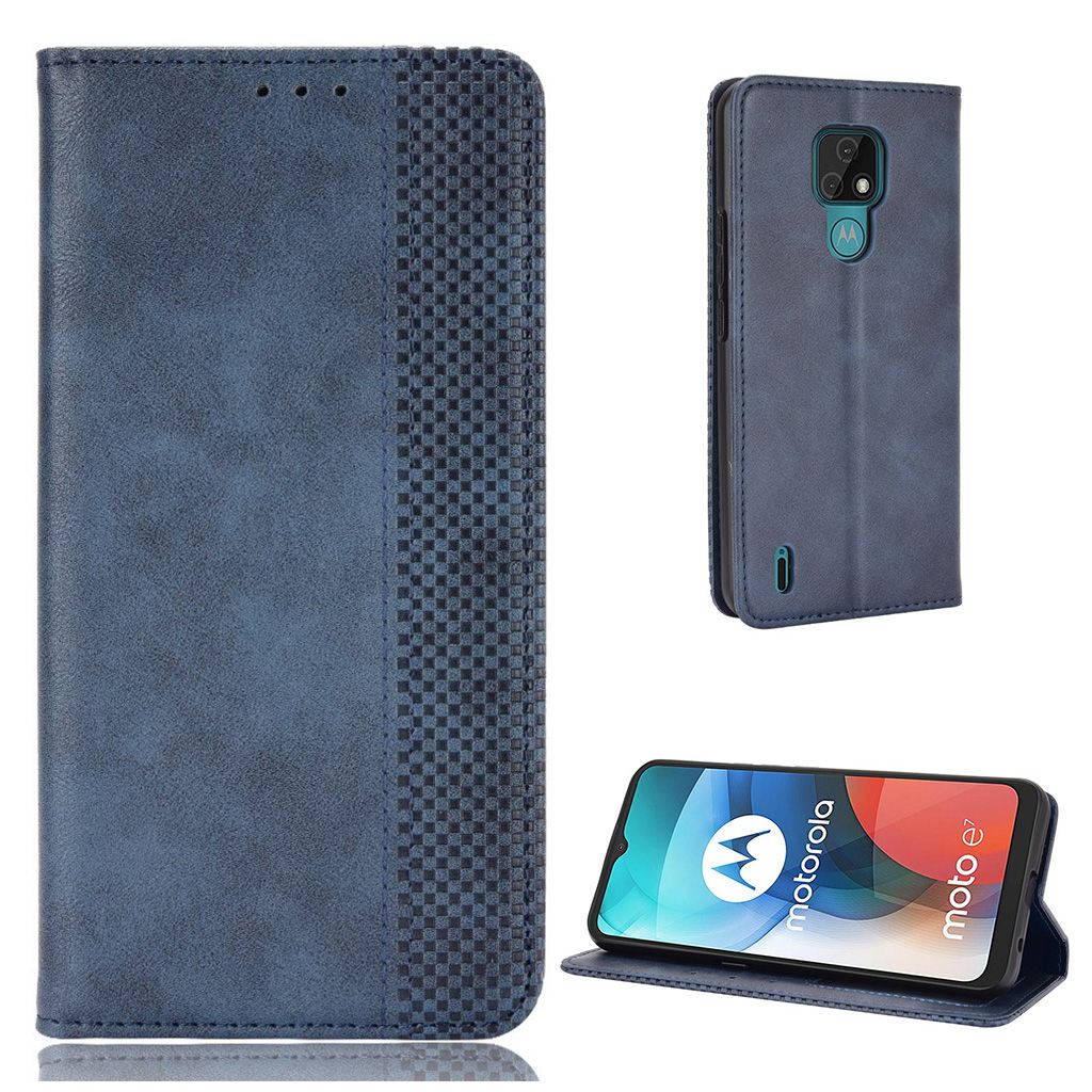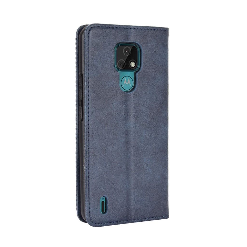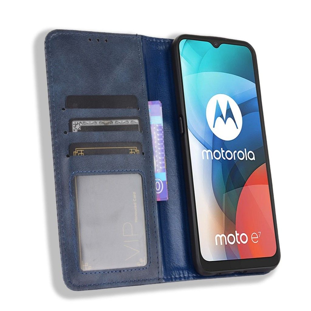 Bofink Vintage Motorola Moto E7 leren beschermhoesje - Blauw