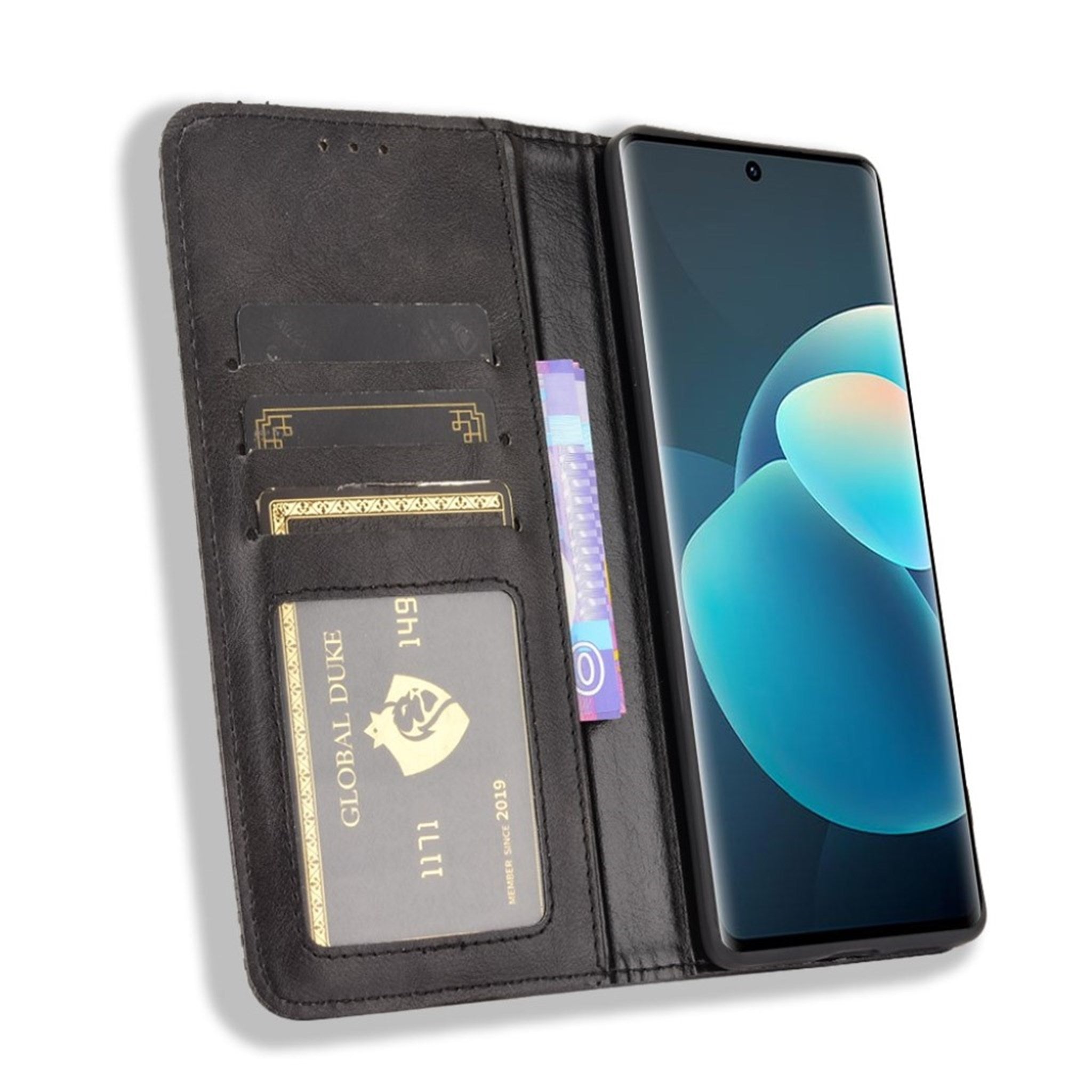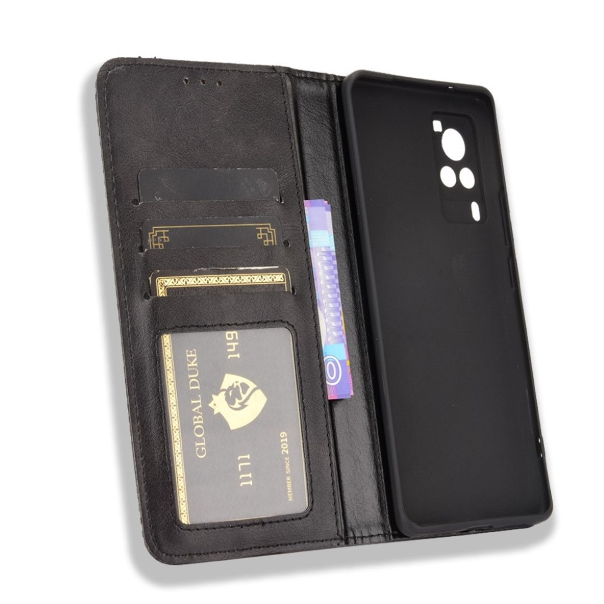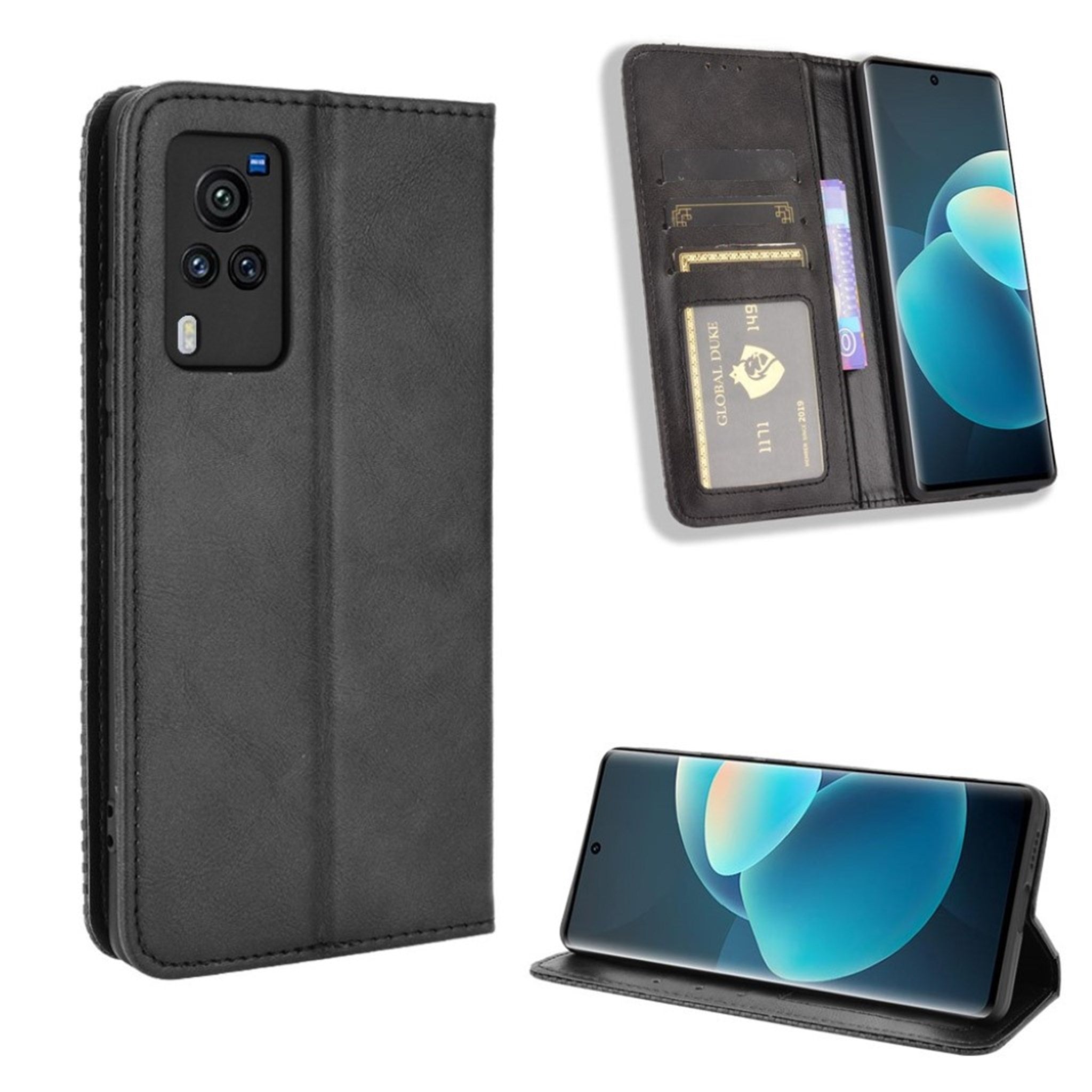 Bofink Vintage Vivo X60 5G / Vivo X60 Pro leren beschermhoesje - Zwart